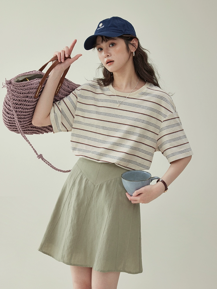 | nameOriginal | AMUU original round neck color block striped short-sleeved T-shirt |