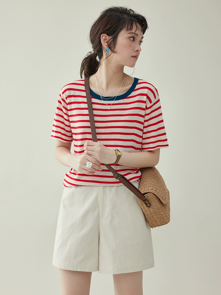 | nameOriginal | AMUU round neck contrast stripes loose casual short sleeves |