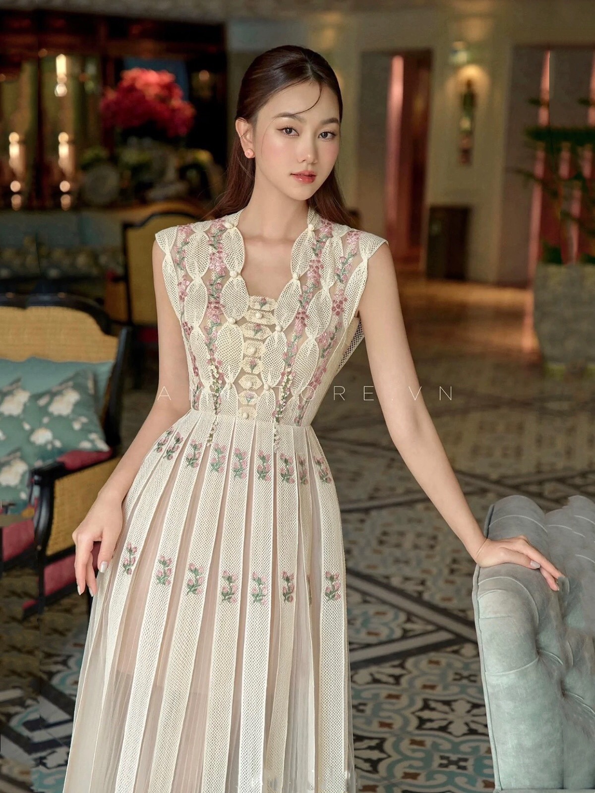 | nameOriginal | AMY Vietnamese niche heavy industry lace dress crochet |