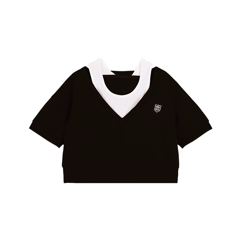 | nameOriginal | Amybaby girls suit 2024 new children's college style fake two-piece T-shirt casual shorts two-piece set |