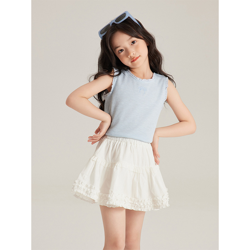 | nameOriginal | Amybaby Girls' Top 2024 Summer New Solid Color Simple Comfortable Embroidered Ear-rimmed Round Neck Vest |