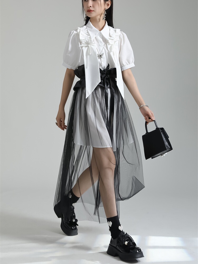 | nameOriginal | An A-line mesh skirt with girdle design |