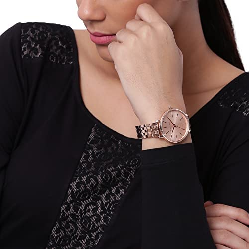 The Michael Kors Women’s Analog Quartz Watch is a stunning timepiece that exudes elegance and sophistication. With its sleek and stylish design, this watch is perfect for any occasion, whether it’s a formal event or a casual day out. The watch features a high-quality quartz movement that ensures accurate timekeeping, while the analog display provides a classic and timeless look. The stainless steel case and band are durable and long-lasting, and the scratch-resistant mineral crystal protects the watch face from damage. The watch also features a date display and is water-resistant up to 50 meters, making it suitable for swimming and snorkeling. Overall, the Michael Kors Women’s Analog Quartz Watch is a must-have accessory for any fashion-conscious woman who wants to make a statement with her style.