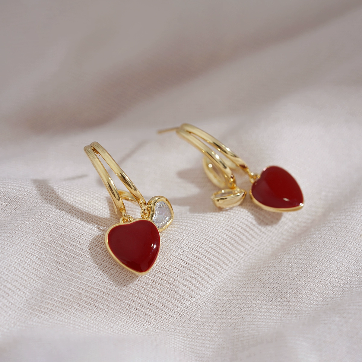 Anchor red unique design peach heart retro earrings
