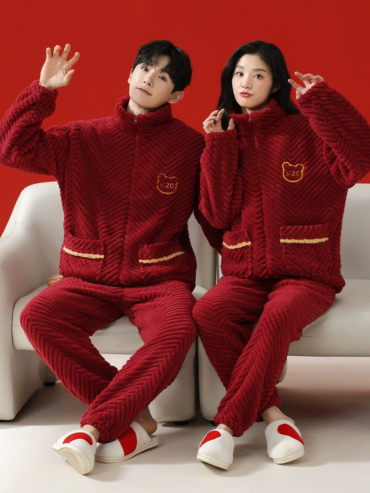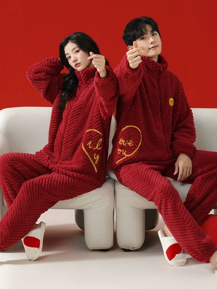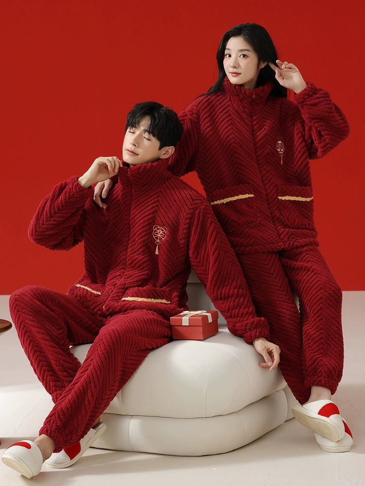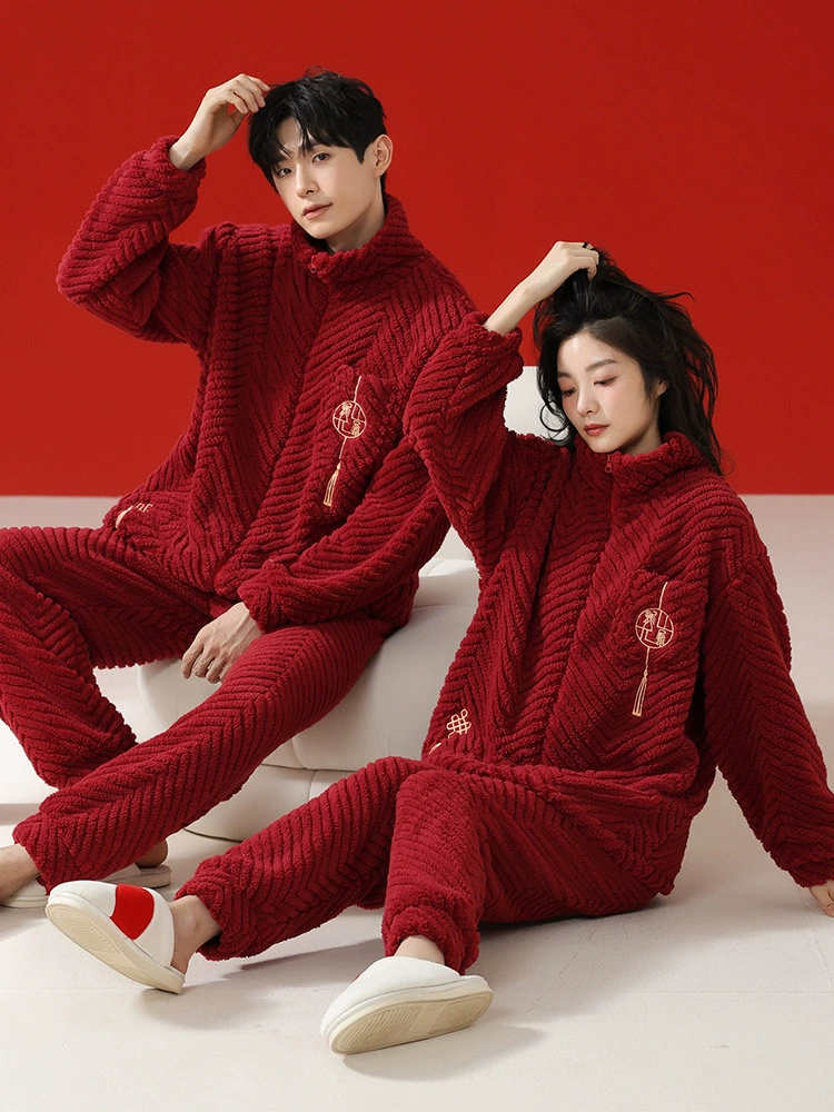 Ancient and Modern @Couple Pajamas Winter Autumn and Winter Coral Velvet Red Zodiac Year Wedding Plus Velvet Thickened Home Clothing for Men and Women