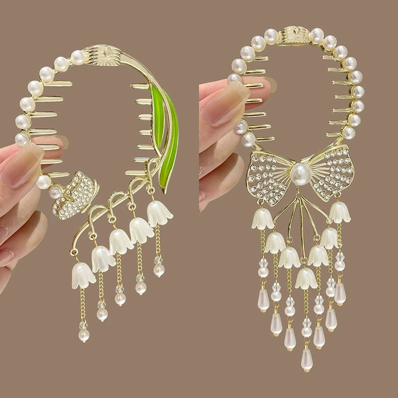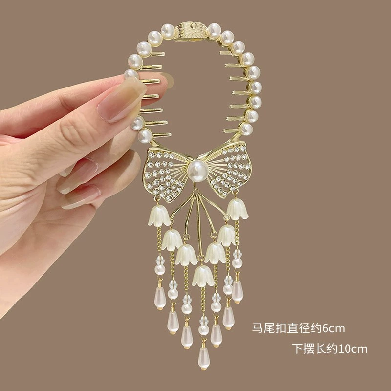 | nameOriginal | Ancient bell orchid tassel hairpin for women's ball head fixed artifact grabber high-end hair buckle half-tied hairpin |