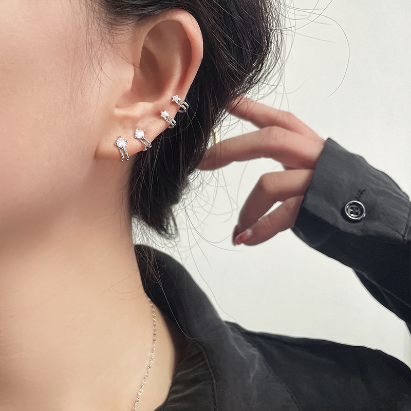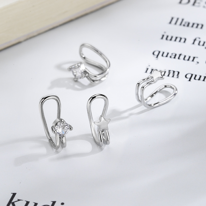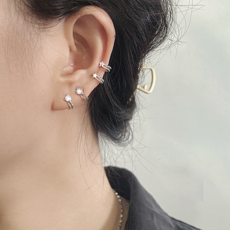 Ancient Cat Ning Combination Small Diamond Ear Bone False Earrings Cool Girl Super Fairy Zircon Star Ear Clip Couple Student