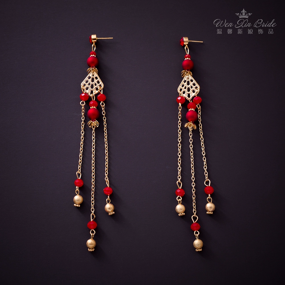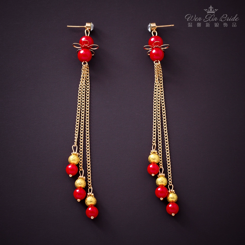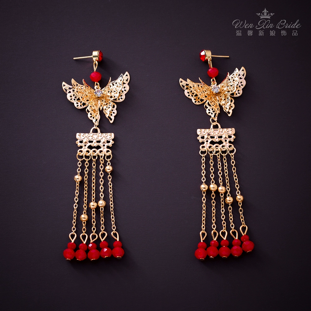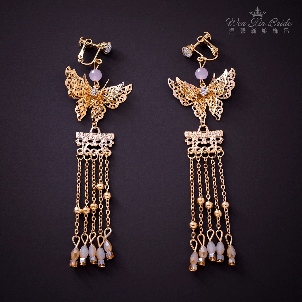 | nameOriginal | Ancient costume long tassel Chinese style dragon and phoenix gown Xiuhe suit ear clip |