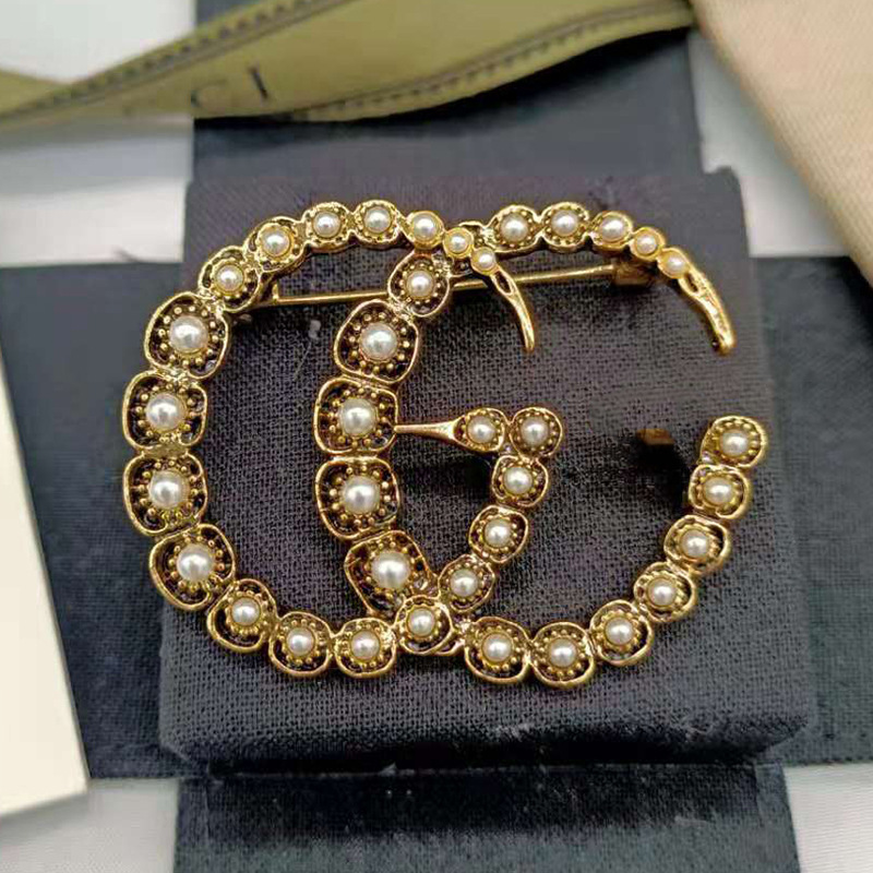 | nameOriginal | Ancient Double G letters European and American New brooch simple fashion Coat Pearl corsage brooch pin accessories decoration |