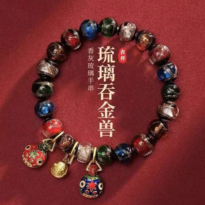 | nameOriginal | Ancient Fragrant Grey Glaze Bracelet Gold-swallowing Beast Five-color Men's and Women's DIY Bracelet Family of Three Enamel Colored Beads |