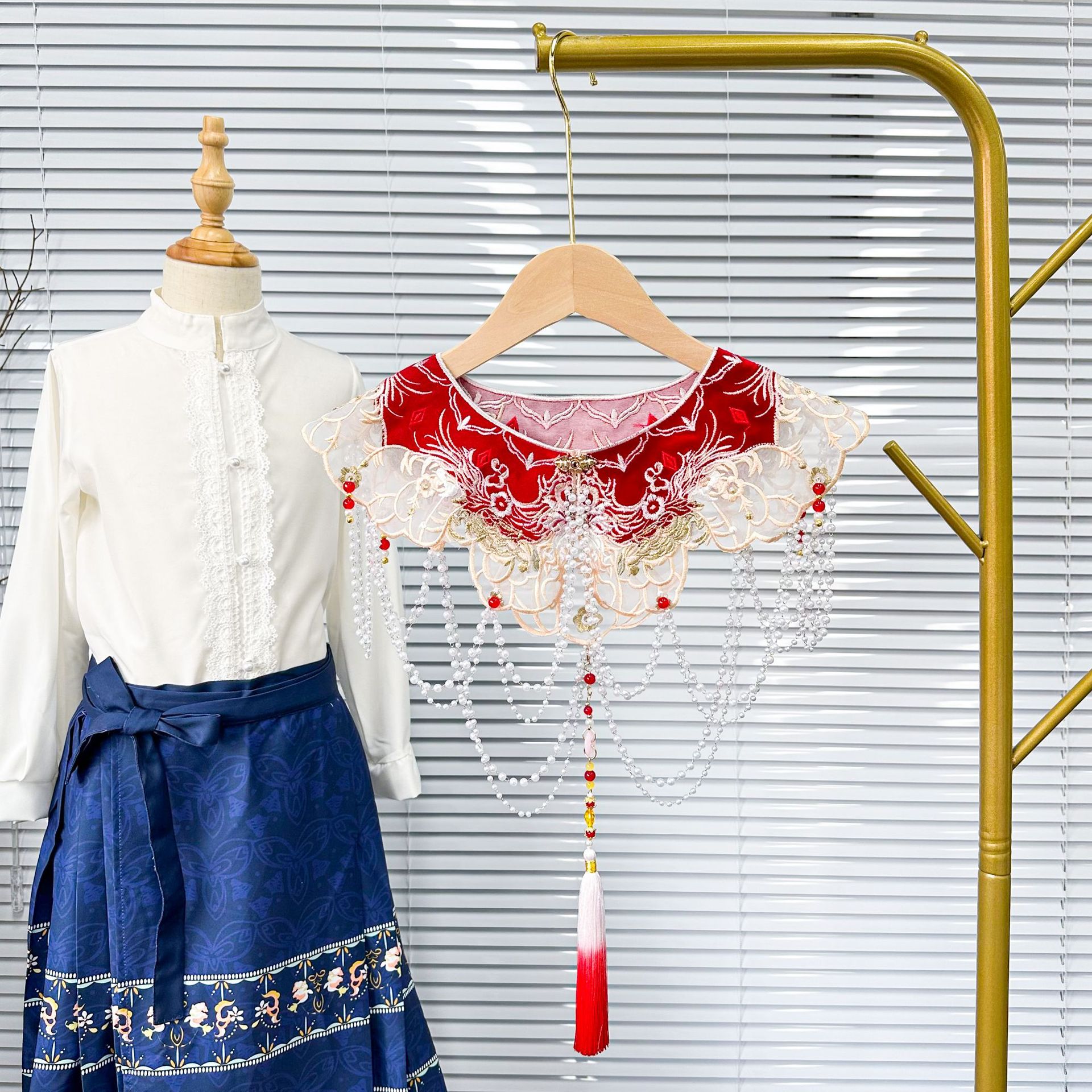 | nameOriginal | Ancient Style cloud shoulder Chinese style pearl collar hot sale red vest skirt Hanfu women's clothing matching fake collar |