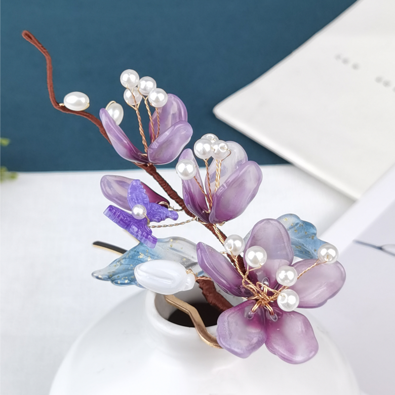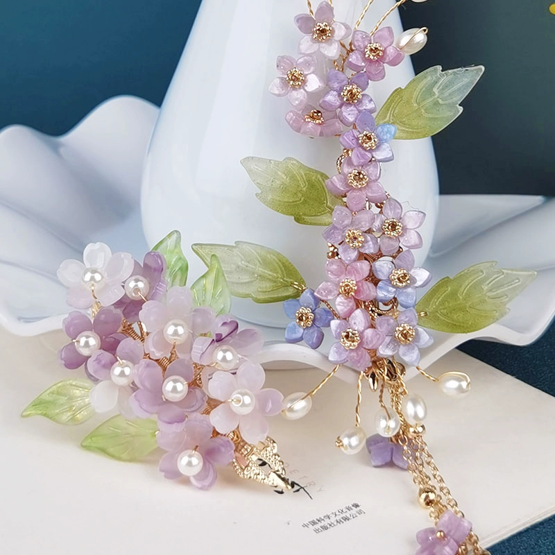 | nameOriginal | Ancient style purple flower tassels embellish Hanfu hairpins |