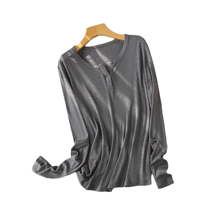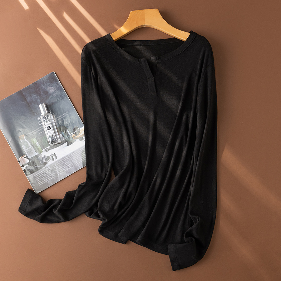 And simple wind nude long sleeve T-shirt soft glutinous comfortable lyocell mulberry silk scissors V-neck base shirt women’s mask T