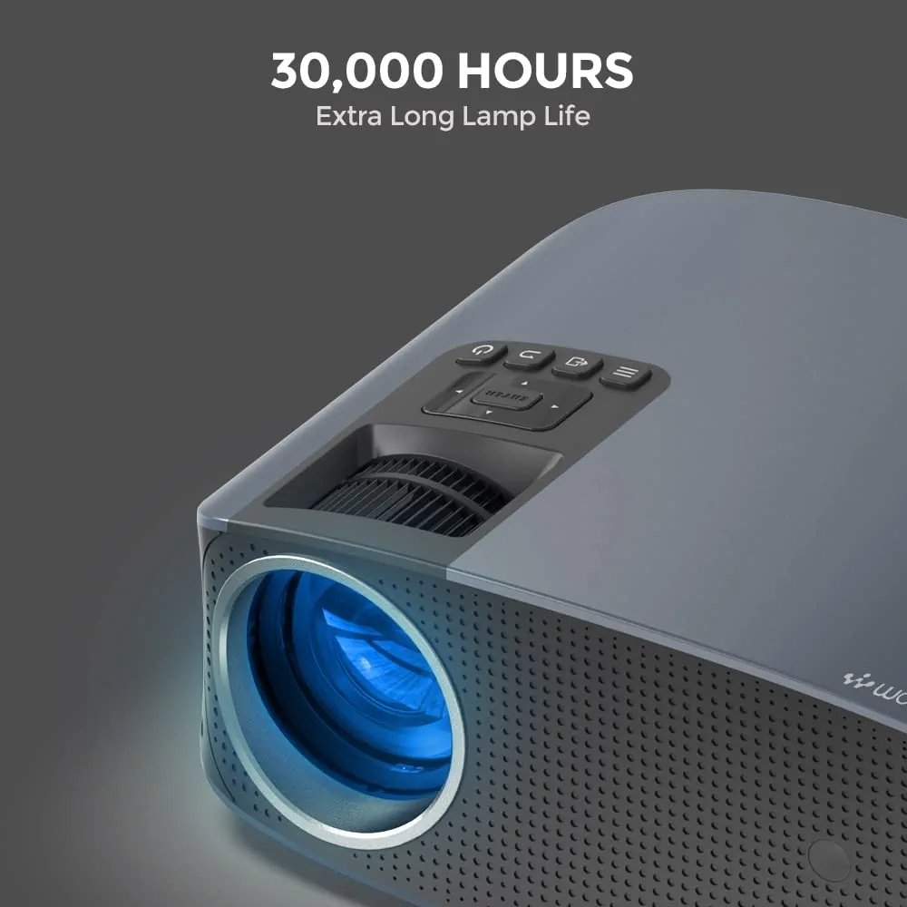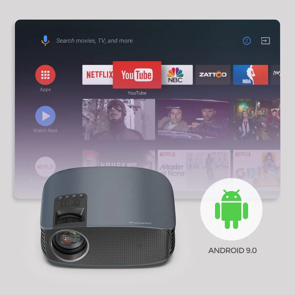 The Wownect Mini Android Projector boasts a native full HD 1920 x 1080 resolution and can project images from 50″ to 200″. It comes with Android 9.0 TV with Airplay and Miracast, 6000 lumens of brightness, 3000:1 contrast ratio, and wireless screen mirroring. The projector also has a powerful 5W built-in speaker and a lamp life of more than 30,000 hours.
