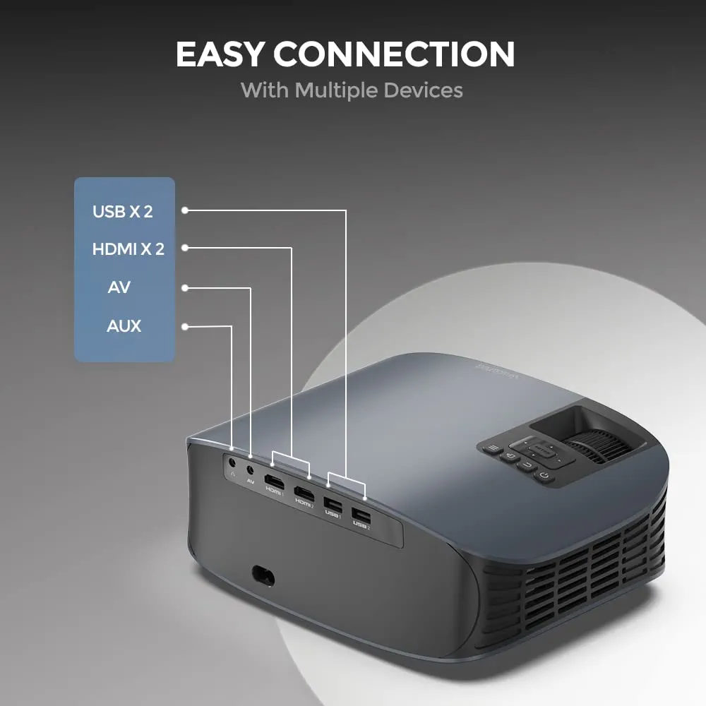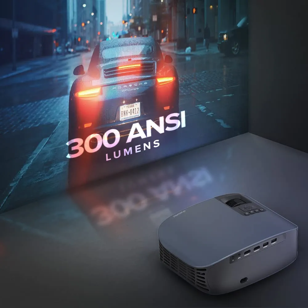 The Wownect Mini Android Projector supports smartphone screen sync over 2.4G -5G WiFi and also supports a dual-band Wi-Fi connection. It is equipped with USB/HDMI/AV/IR interfaces, making it easy to connect with TV sticks, DVDs, set-top boxes, smartphones, tablets, laptops, video games, and more. This video projector is perfect for playing videos, TV series, presentations, outdoor movies, gaming, and more.
