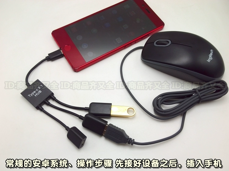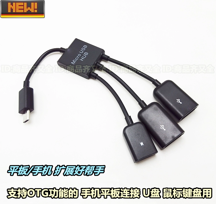 Android micro mobile phone tablet OTG data cable one to three dual USB otg mouse keyboard with power supply