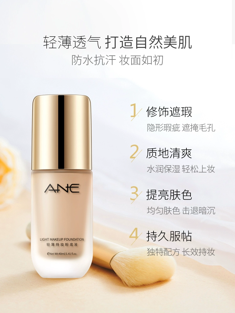 | nameOriginal | ANE liquid foundation nourishes the skin, lasts long-lasting and does not remove makeup, special for women with dry skin, mixed oil skin, sensitive skin, oil control and concealer |