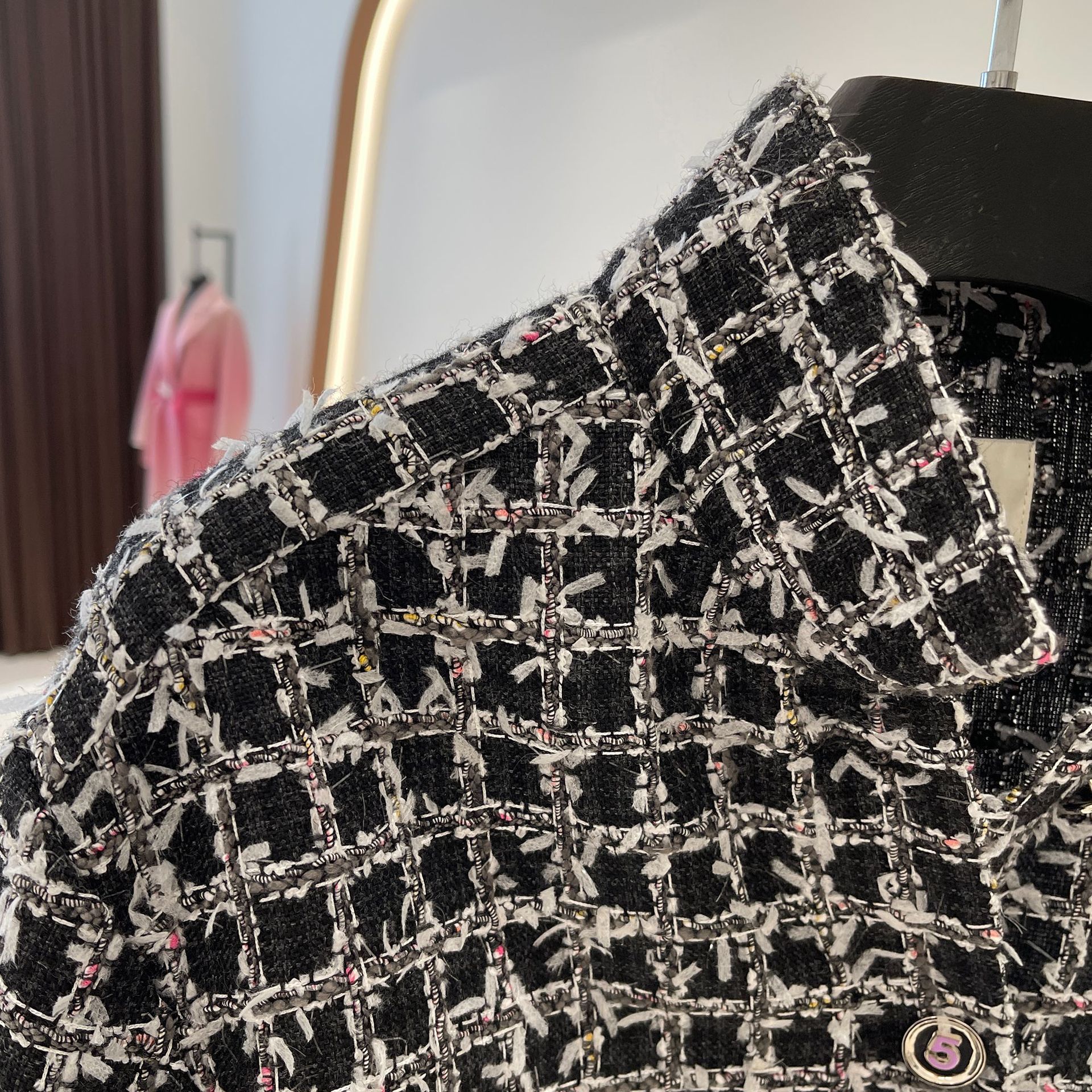 Anfeiona Spring and Autumn New French style Chanel rainbow plaid tweed stand collar casual personalized women’s coat