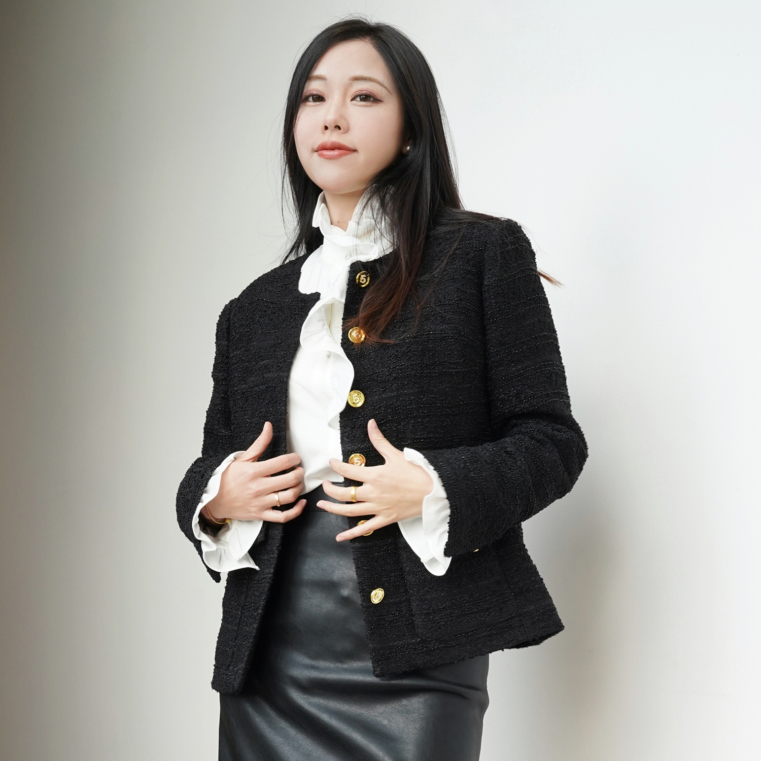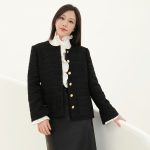 Anfiona 2024 New French Style Tweed Vintage Black Gold Handmade Beaded Heavy Metal Women’s Coat