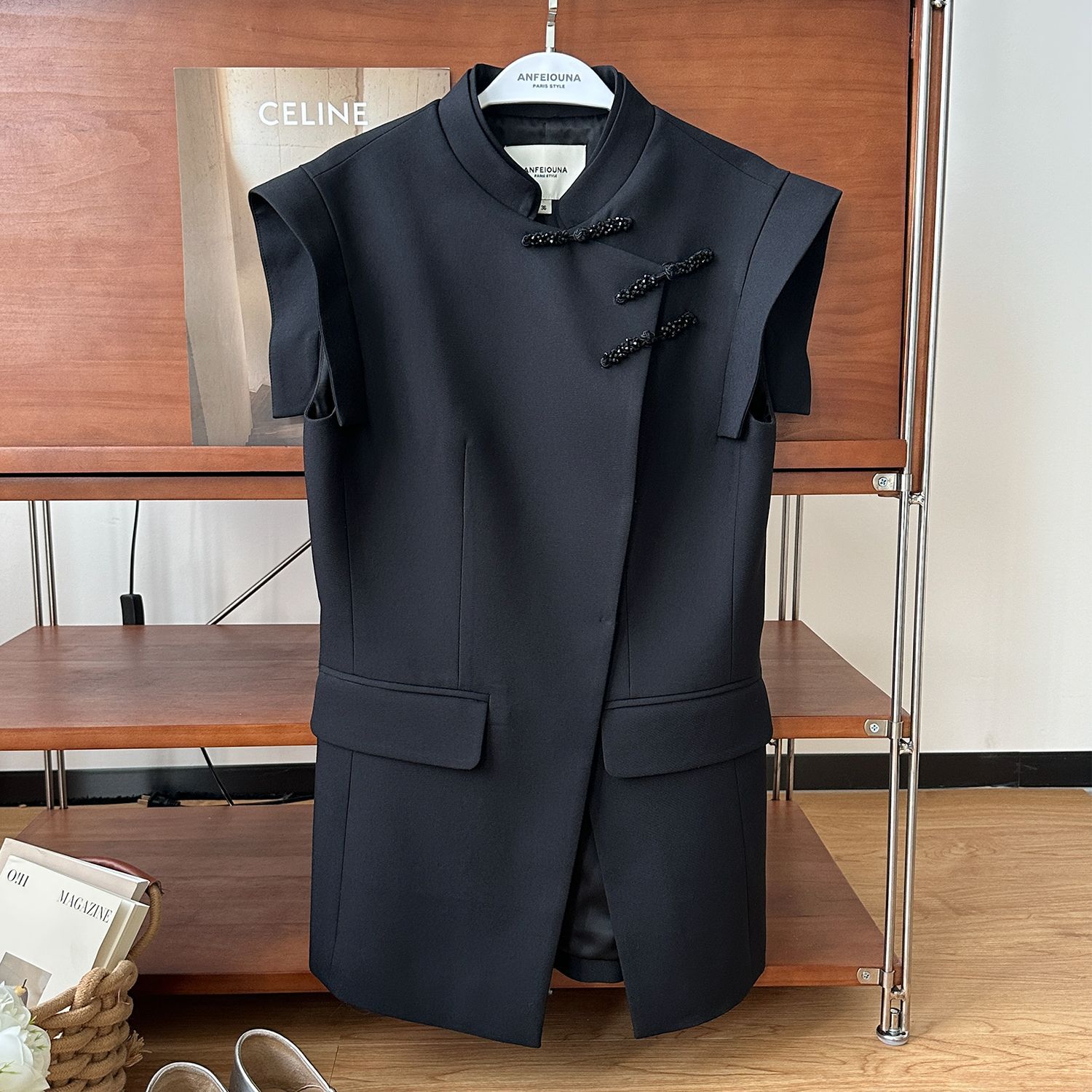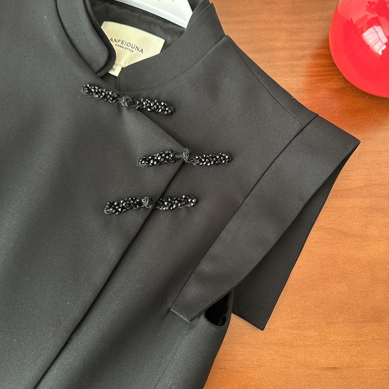 | nameOriginal | Anfiona 2024 New National Style Cheongsam Stand Collar New Chinese Style Button Three-dimensional Cuff Black Vest Women's Vest |