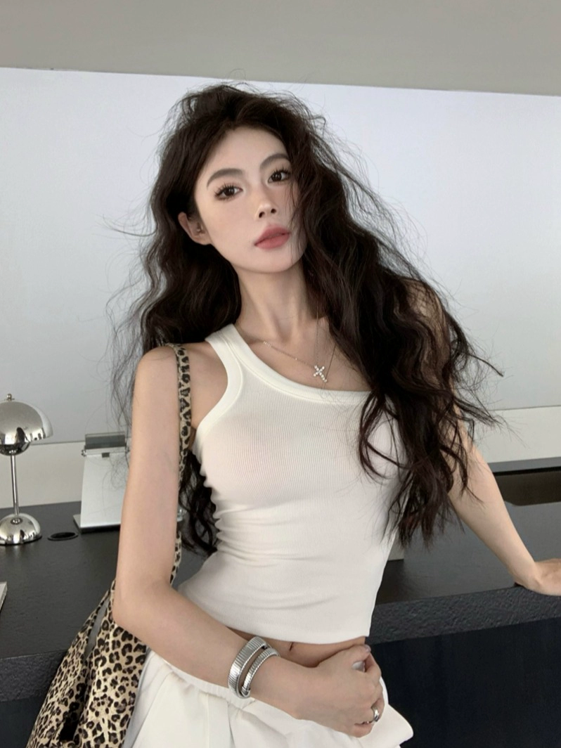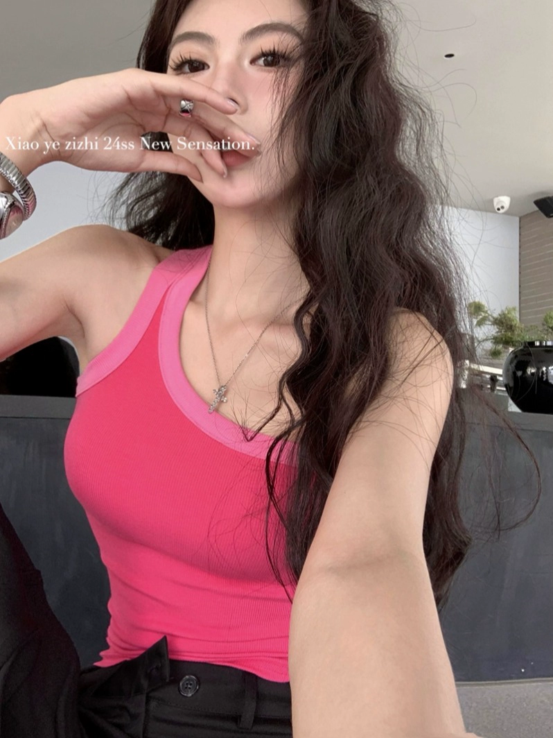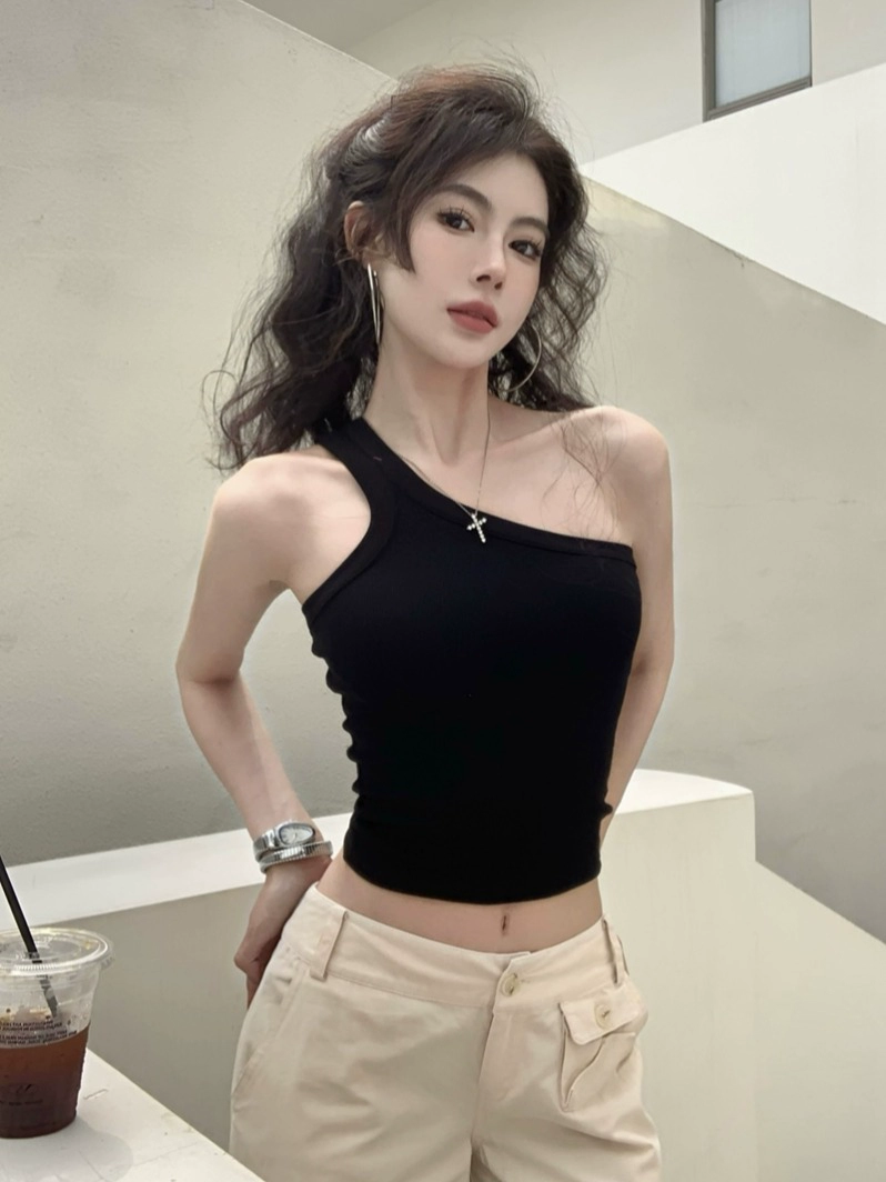 Angled shoulder slim pink slimming midriff-baring camisole
