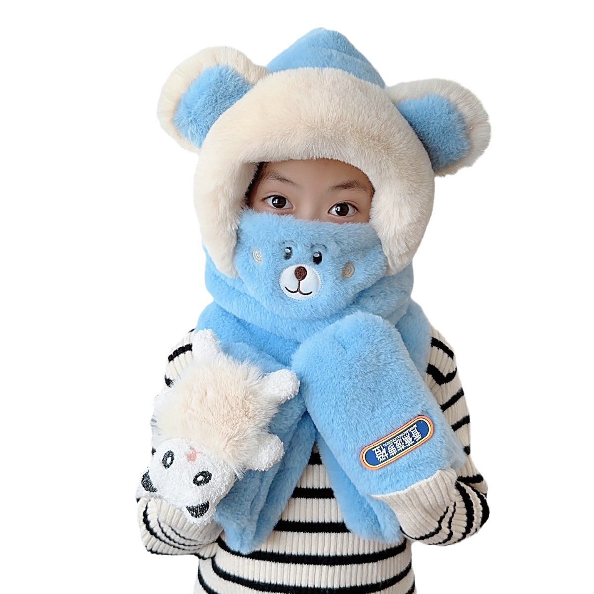 | nameOriginal | Animal cartoon shape children's three-piece hat scarf gloves integrated suit winter warm children's hat super cute |
