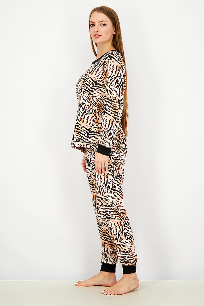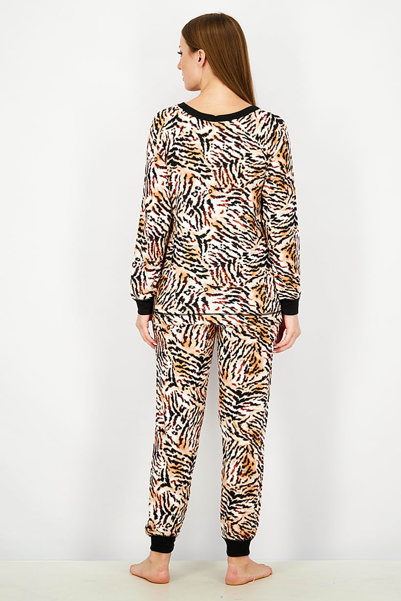 Women Clothing, Sleepwear / Homewear, women 2 pcs animal print pajama top and pants set brown and ivory