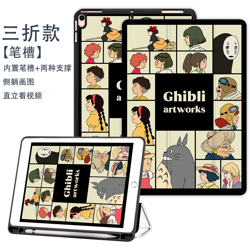 Animation Miyazaki Hayao 2021 new pro11 protective case with pen slot tablet 10.2/10.5 inch air bag case 18/19 ipad air4/3/2/1 tri-fold 5/6 Apple 9.7 mini 654