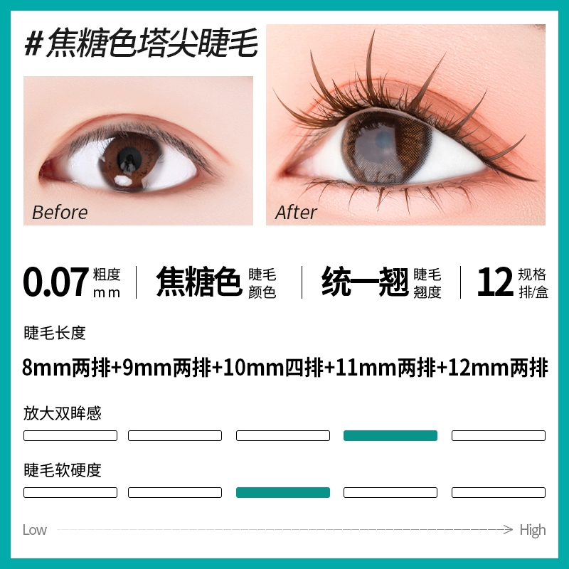 | nameOriginal | anjicat caramel colored spire eyelashes thick segmented false eyelashes brown self-grafted single cluster hair |