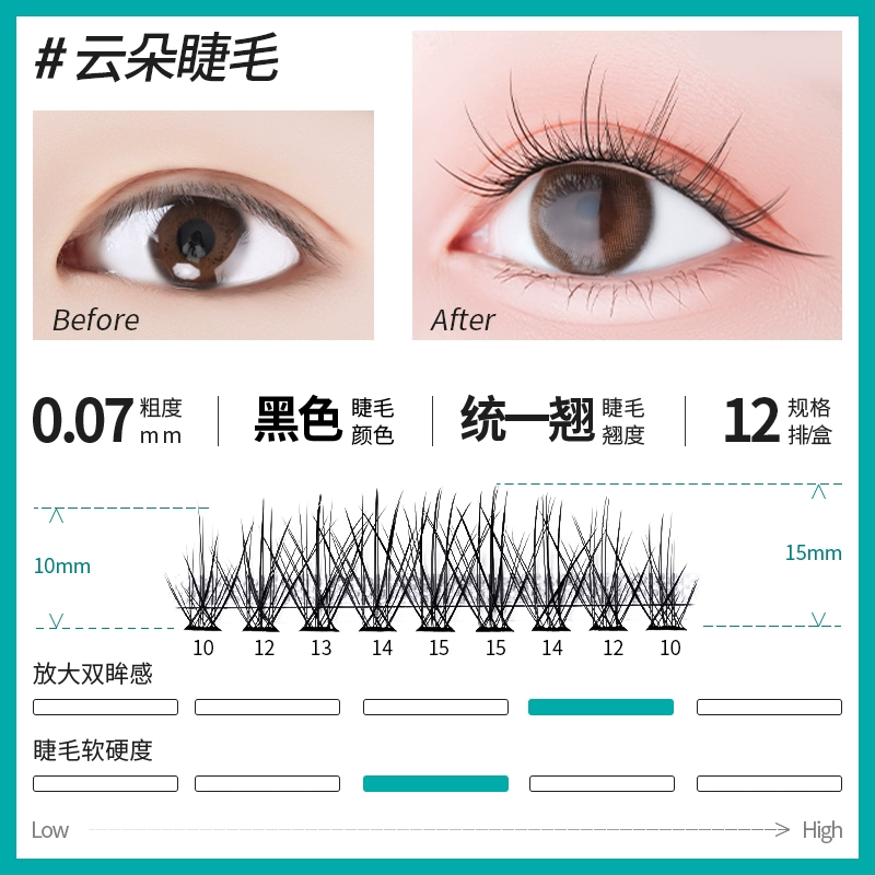anjicat cloud eyelashes summer lightweight single cluster segmented self-grafting false eyelashes mixed pack