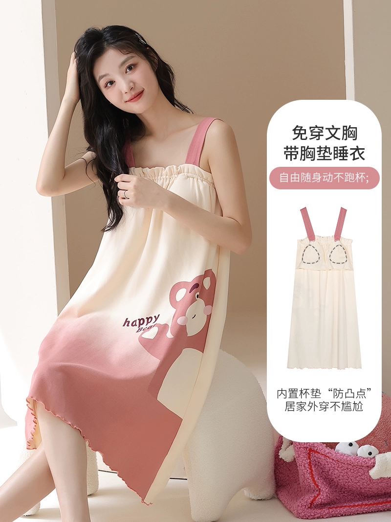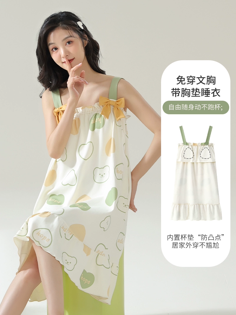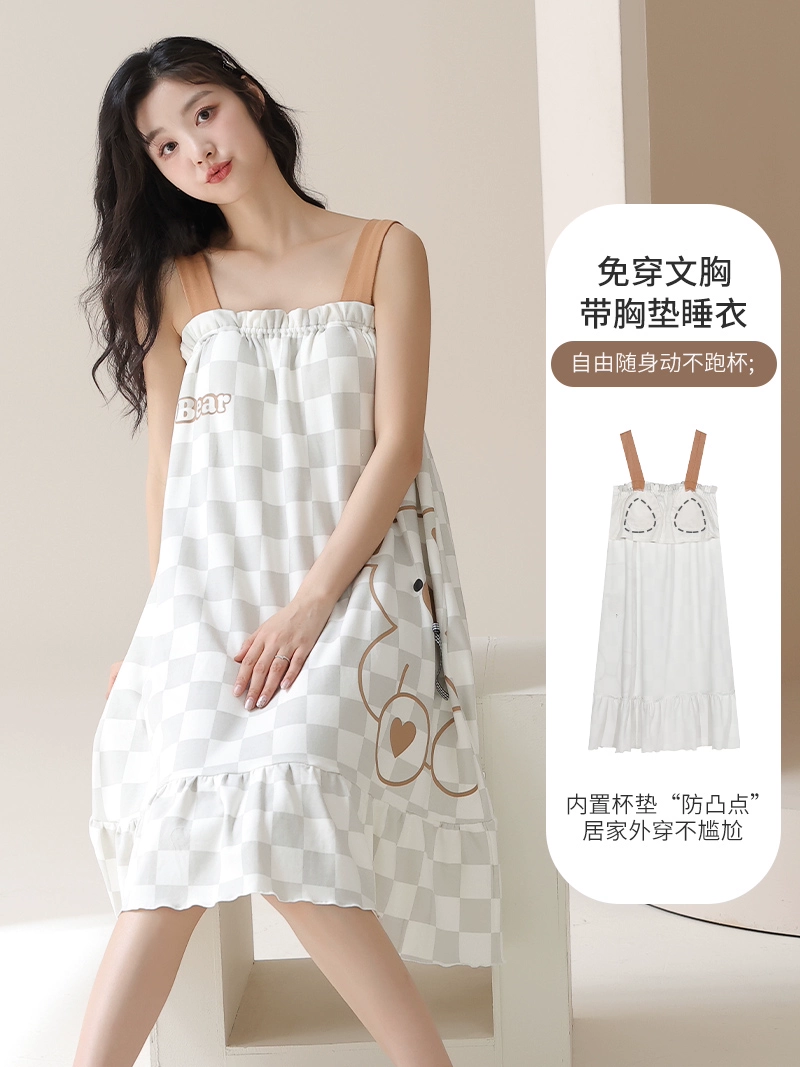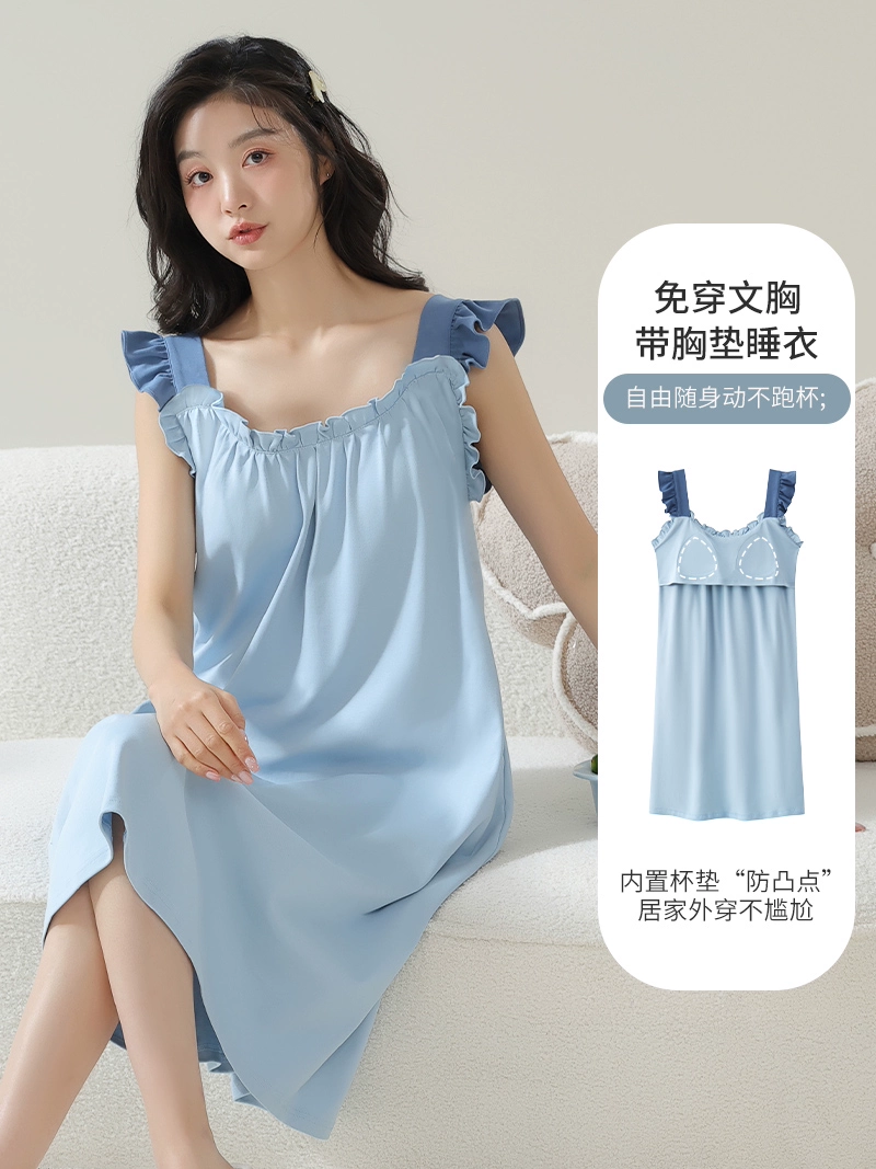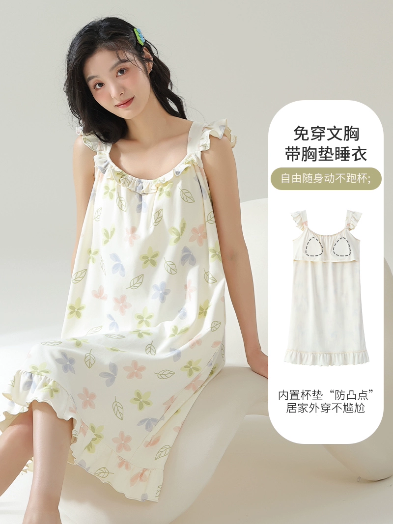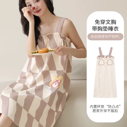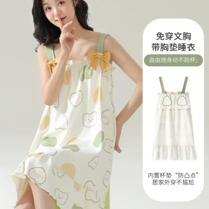 Anjiren Summer Cotton Vest Princess Style Nightgown