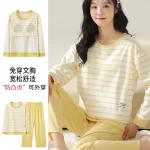 Anjiren women's long-sleeved summer ice silk pajamas with breast pads