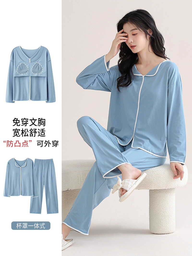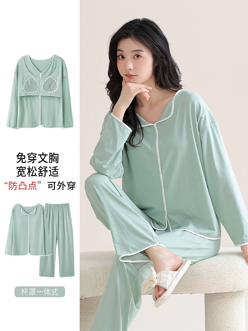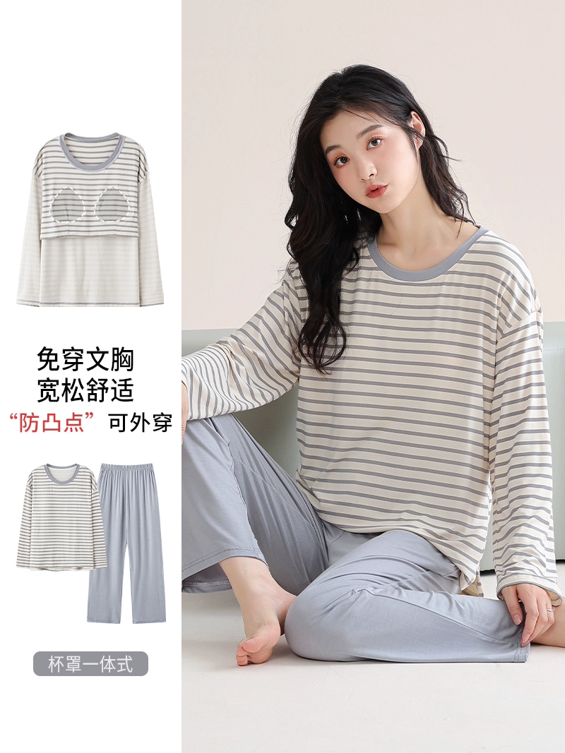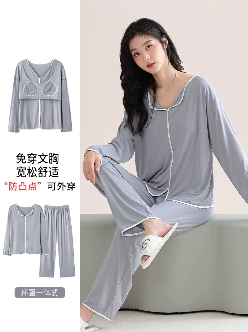 Antarctic woman long -sleeved chest pads summer ice silk pajamas