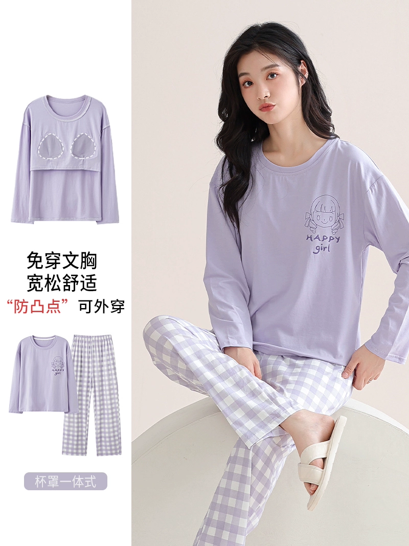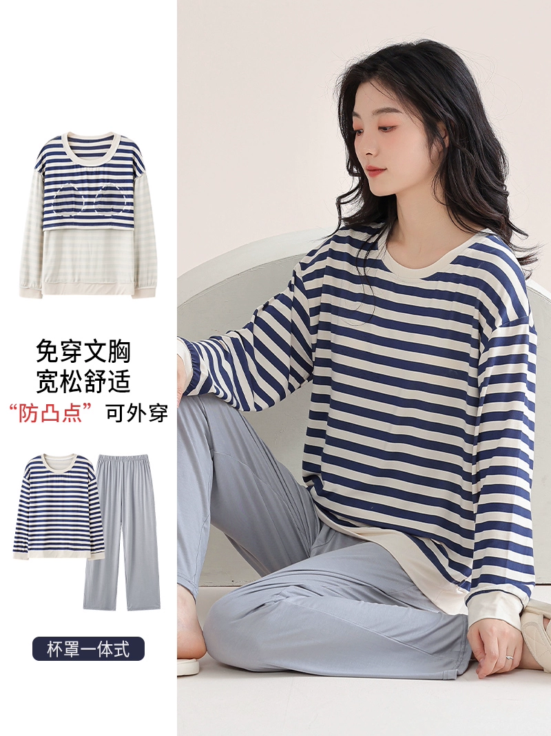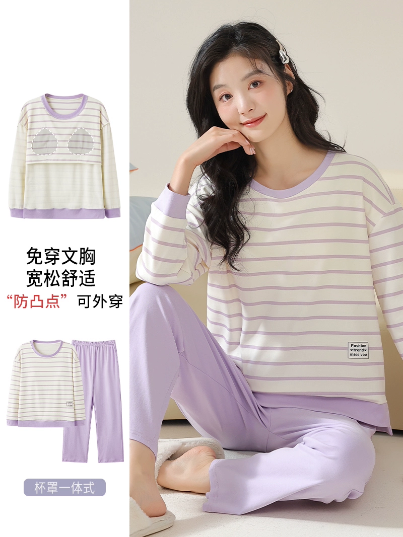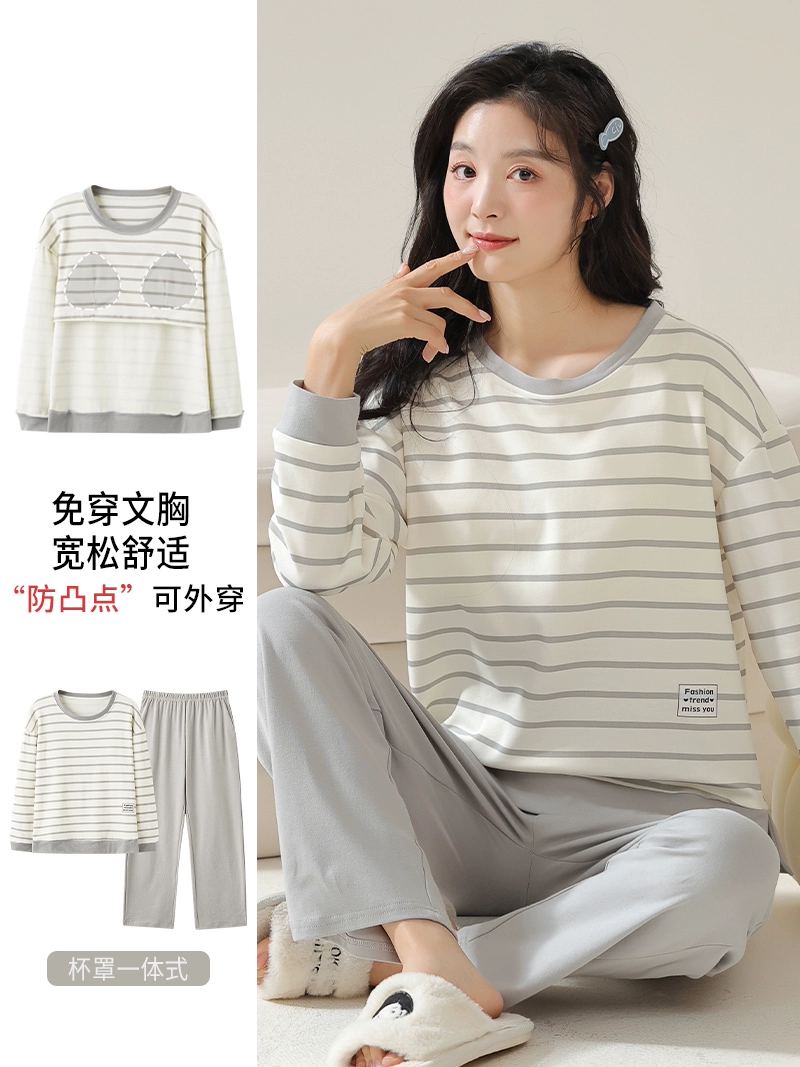 Antarctic woman long -sleeved chest pads summer ice silk pajamas
