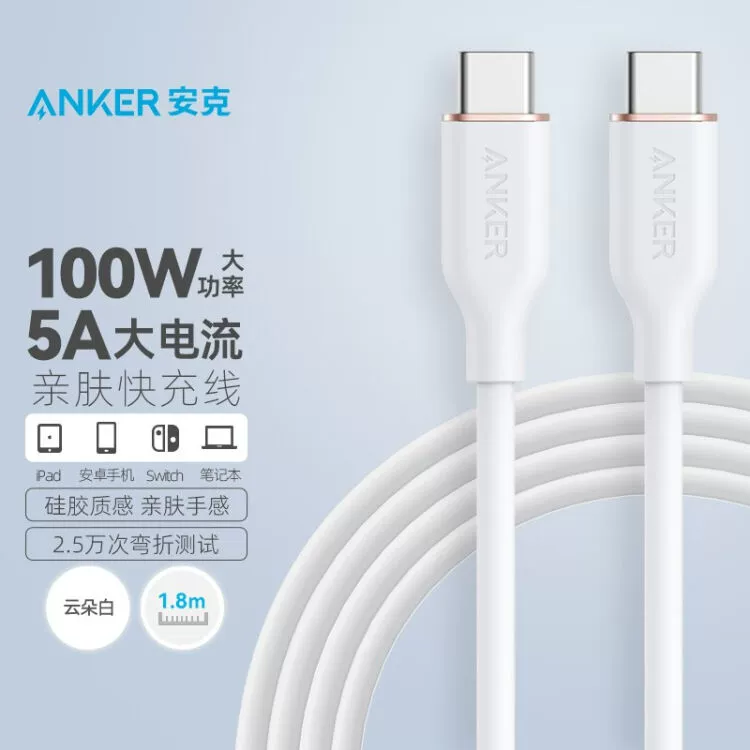 | nameOriginal | Anker Anker silicone skin-friendly cable is suitable for Apple iPhone15 fast charging cable 5A Android data cable 100W dual type-C notebook MacBook mobile phone iPad Huawei Xiaomi fast charging cable |