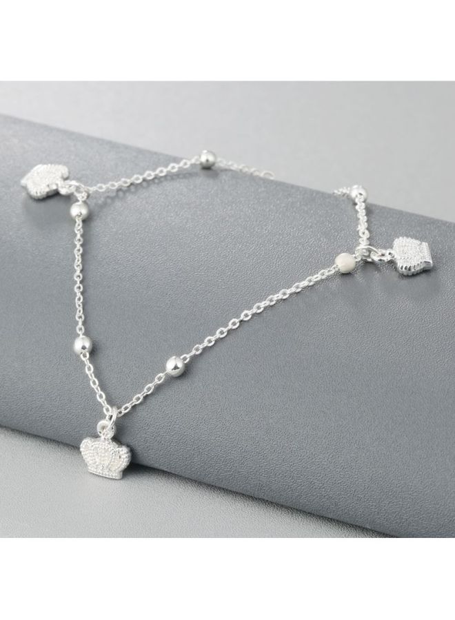 The Three Crown Pattern Anklet is a beautiful and elegant piece of jewelry that will add a touch of sophistication to any outfit. Made from high-quality materials, this anklet features a delicate chain with three crown-shaped pendants that dangle gracefully from it. The intricate design of the crowns is sure to catch the eye and make a statement. The anklet is adjustable to fit most ankle sizes and is comfortable to wear all day long. Perfect for any occasion, this Three Crown Pattern Anklet is a must-have accessory for any fashion-forward individual looking to elevate their style.