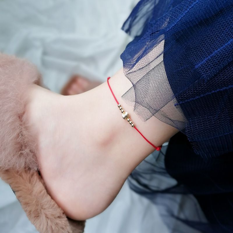 Anklet Shajin Women’s Red Rope Colorless Korean Style Simple Personality Ankle Internet Celebrity Design Bead Collar Voucher