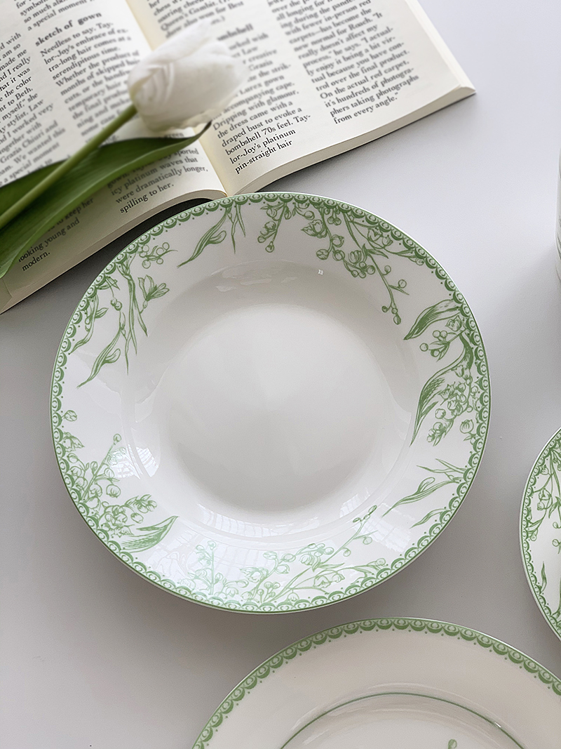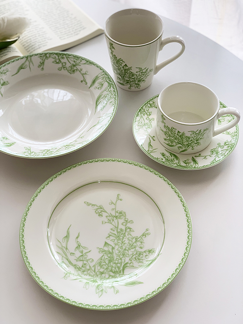 Anmu Good Ins Light Luxury Pastoral Style Green Lily-of-the-valley Printed Ceramic Tableware Mug Coffee Cup Western Food Plate