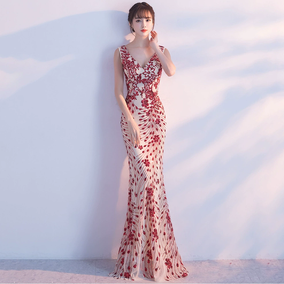| nameOriginal | Annual meeting summer niche slim long fishtail evening dress |