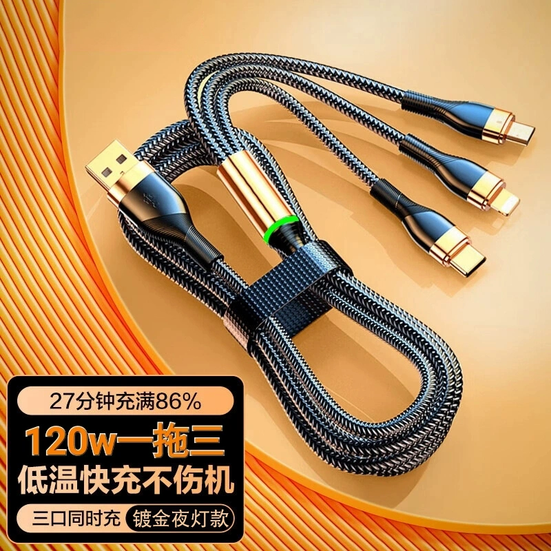 | nameOriginal | Anonymous 120W super fast charging three-head data cable three-in-one suitable for Huawei Apple Xiaomi oppovivo Android typec one-to-three charging cable mobile phone car multi-head flash charging  |