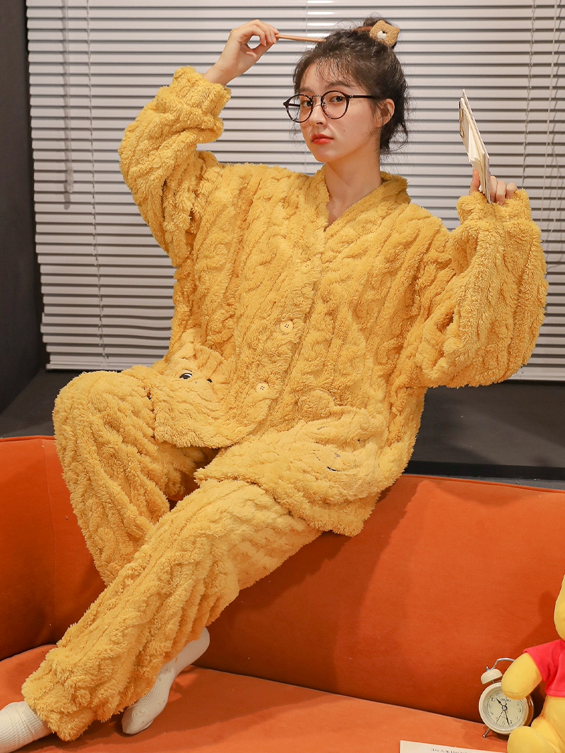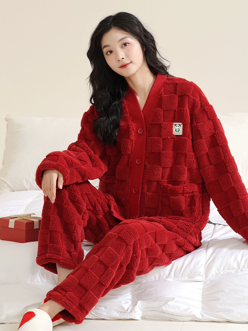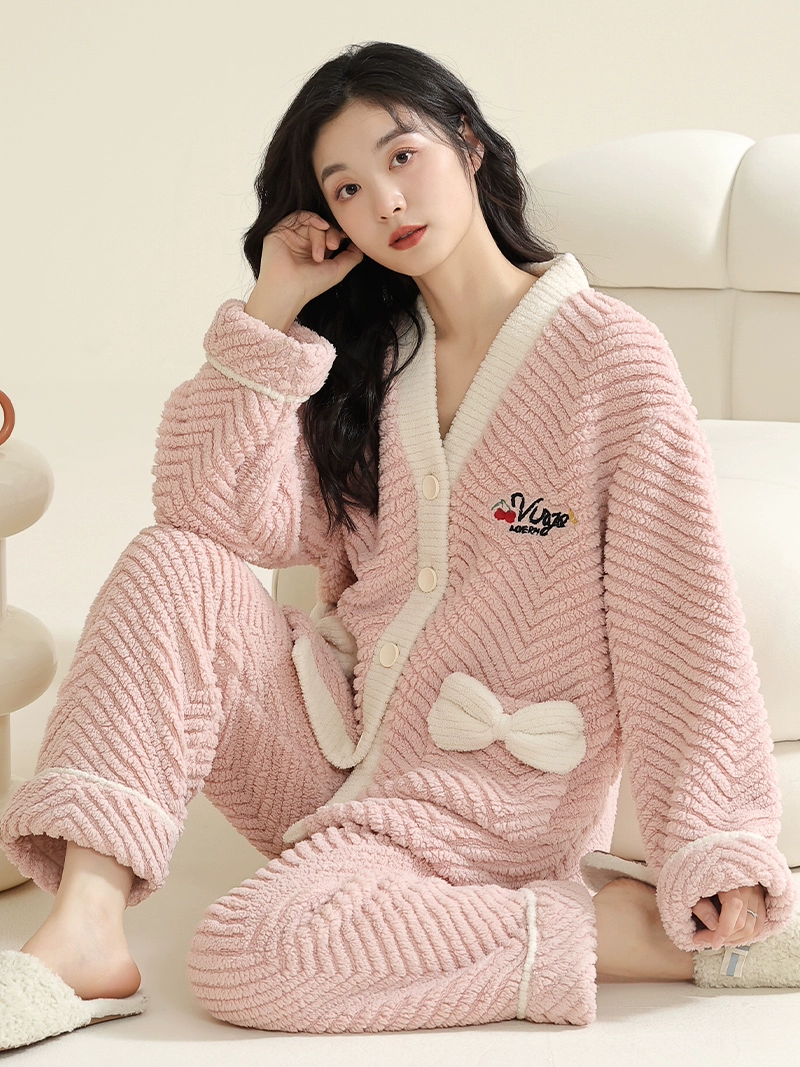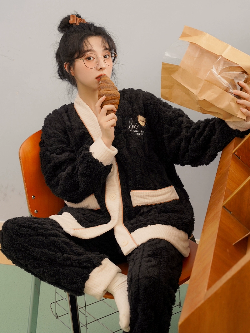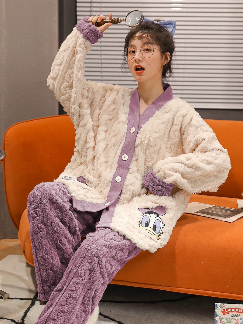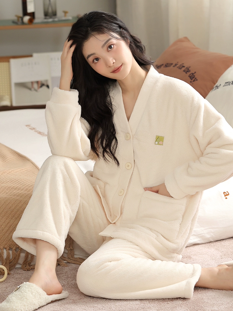 | nameOriginal | Antarctic Coral Fleece Pajamas Women's Winter 2024 New Plus Velvet Thickened Flannel Home Clothing Warm Set |