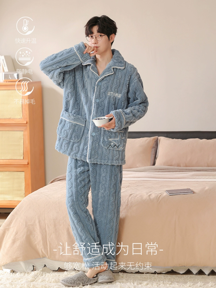| nameOriginal | Antarctic Coral Velvet Pajamas Men's Autumn and Winter Plus Velvet Thickened Men's Flannel Warm Home Clothing Large Size Set |