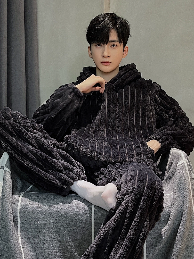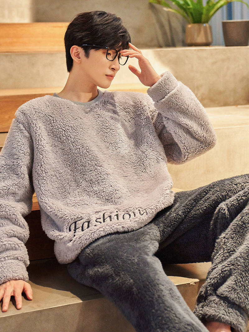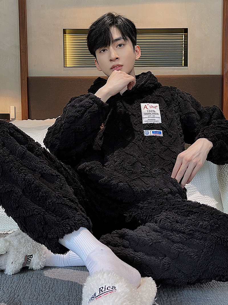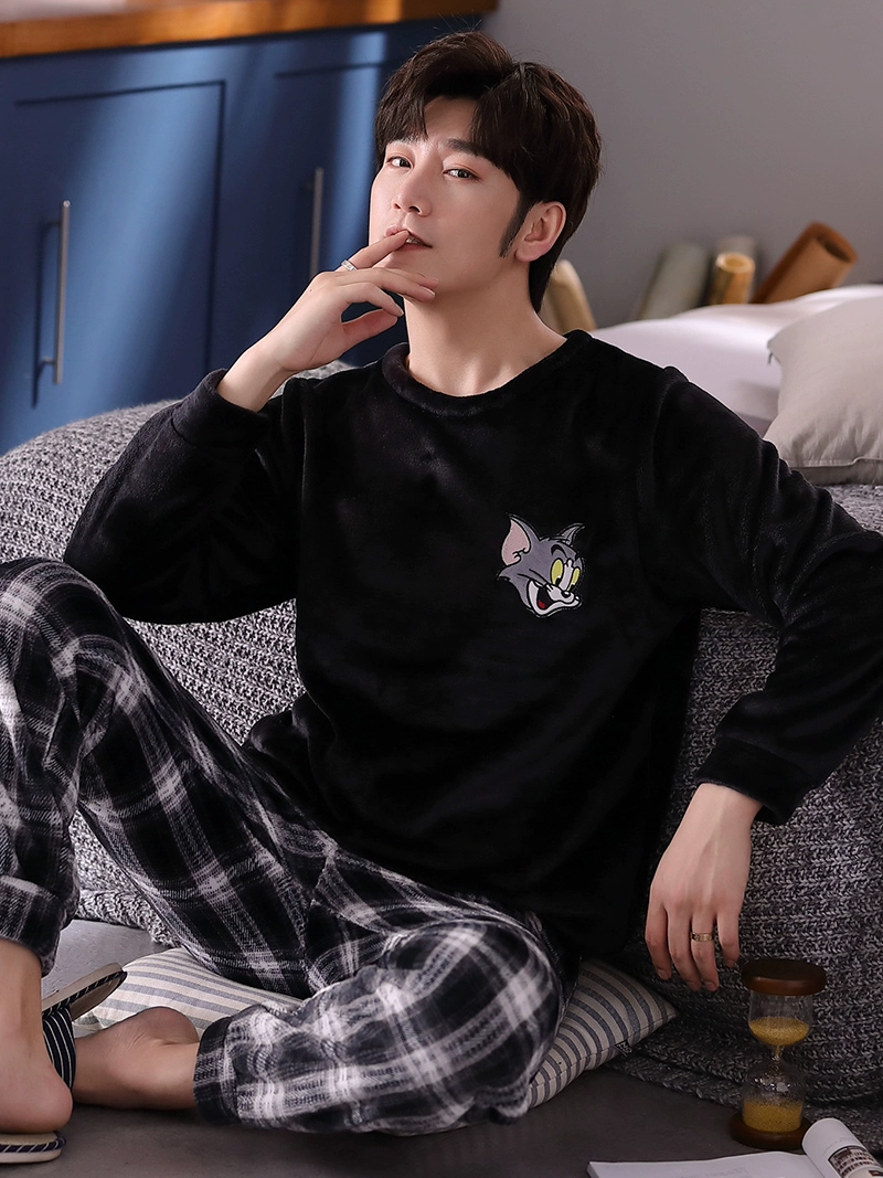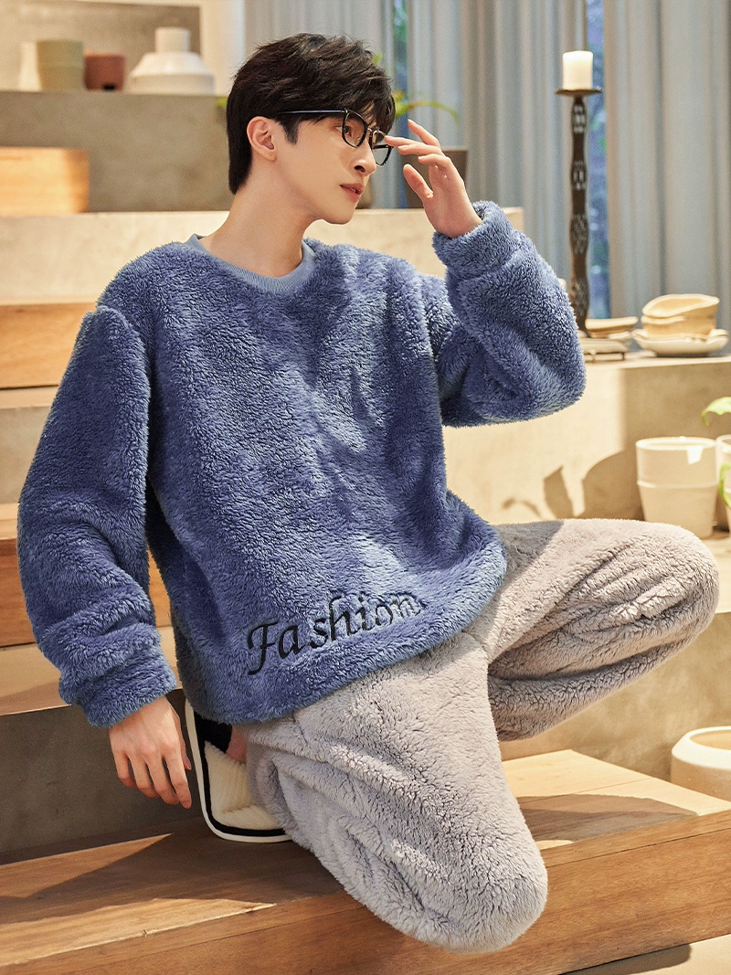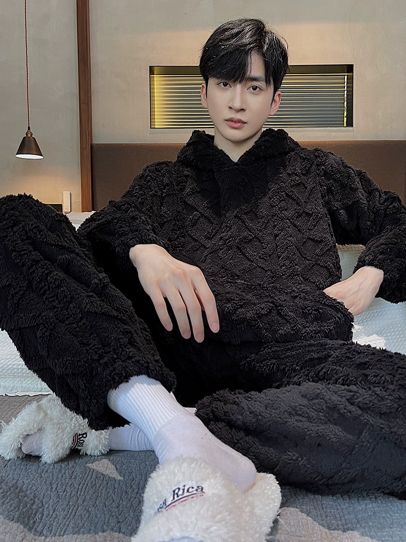 Antarctic Coral Velvet Pajamas Men’s Winter Autumn and Winter Plus Velvet Thickened Warmth Large Size Flannel Home Clothes Set