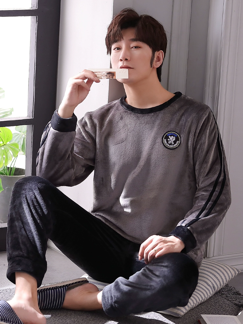 Antarctic Coral Velvet Pajamas Men's Winter Autumn and Winter Plus Velvet Thickened Warmth Large Size Flannel Home Clothes Set