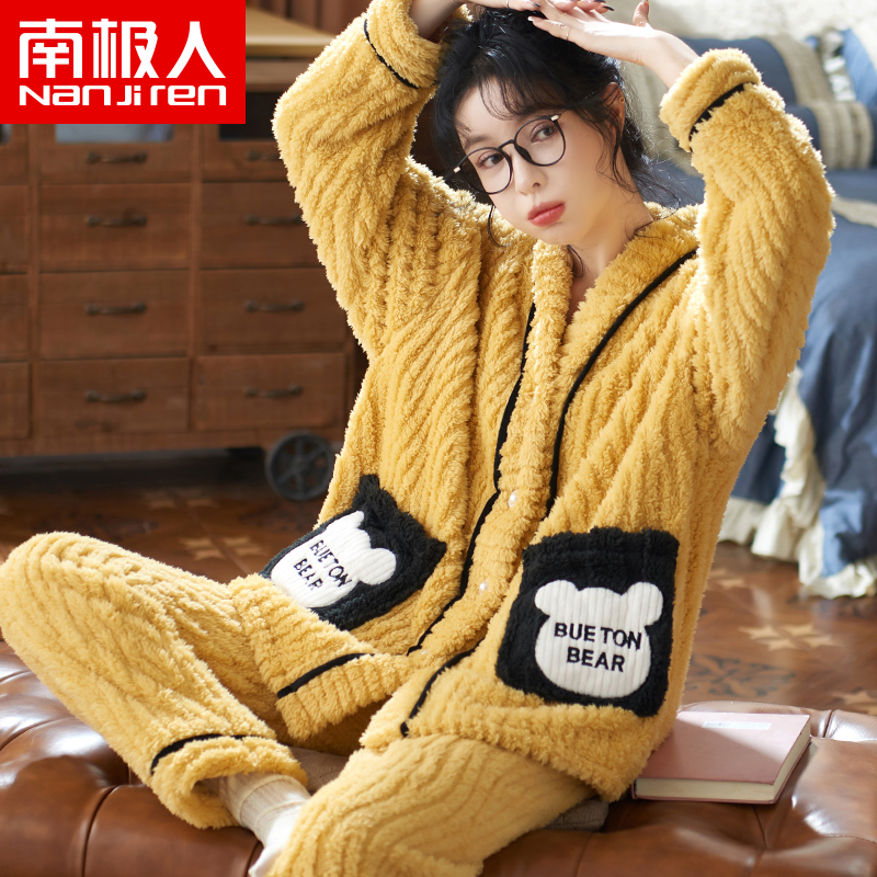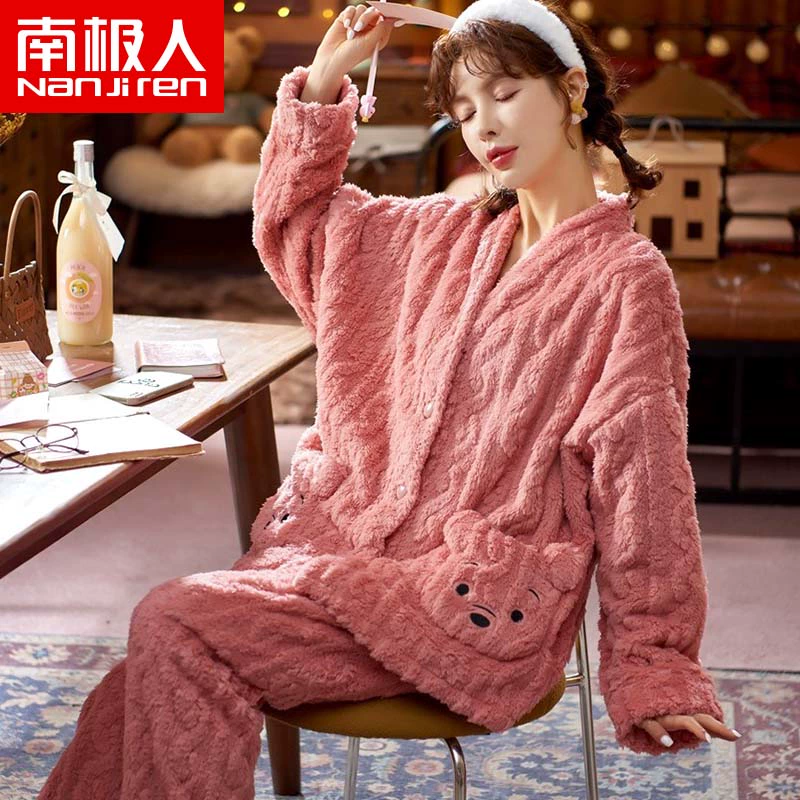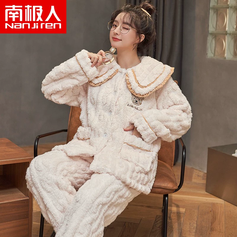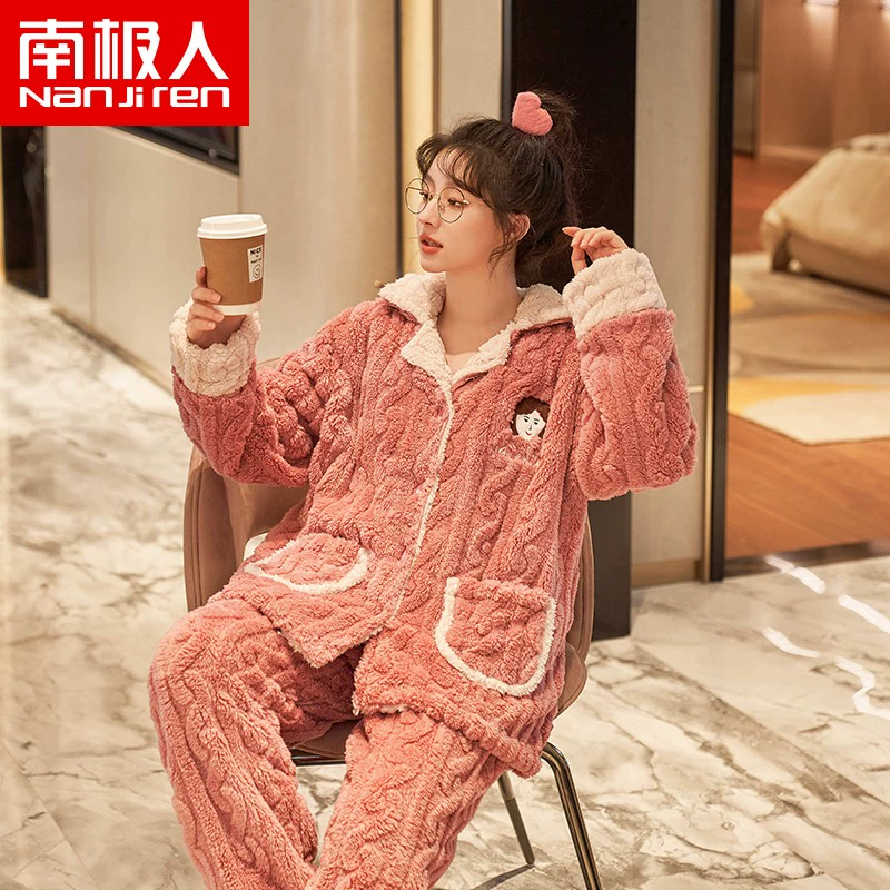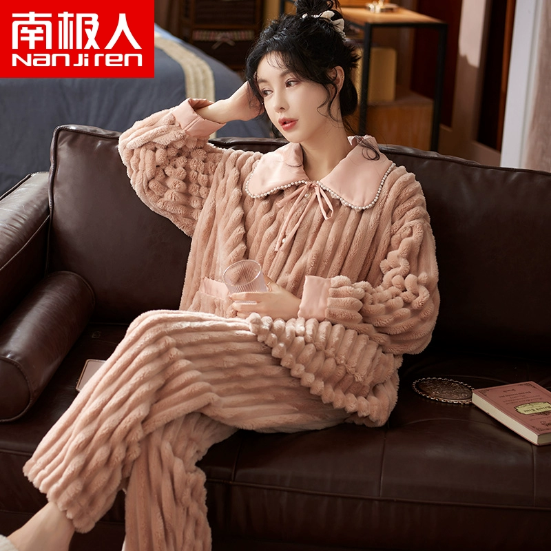 | nameOriginal | Antarctic Coral Velvet Pajamas Women's Autumn and Winter Plus Velvet Thickened 2024 New Flannel Warm Home Clothing Set |