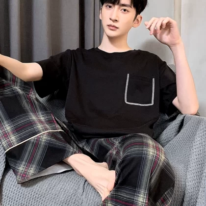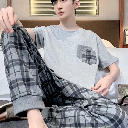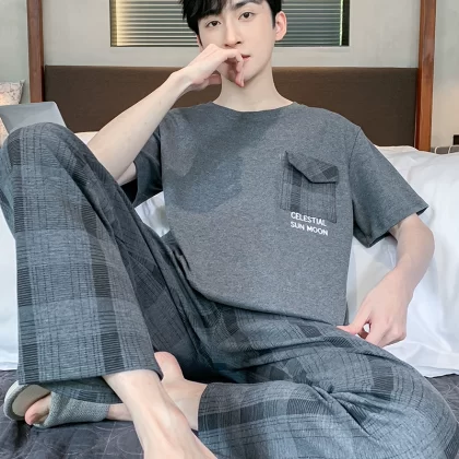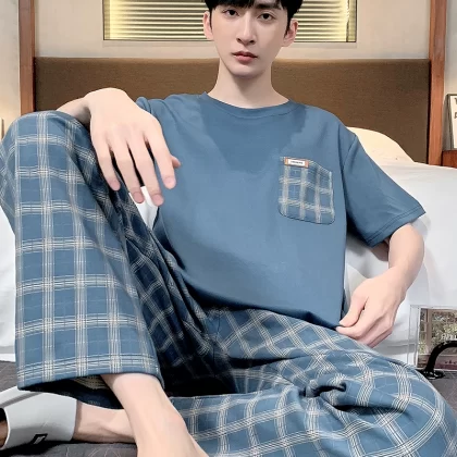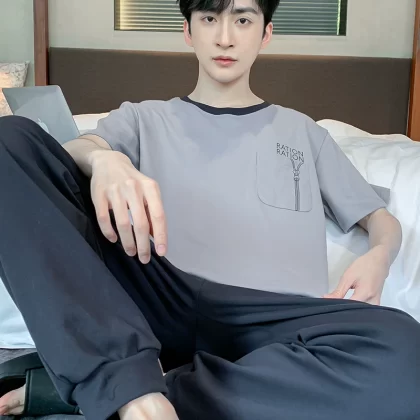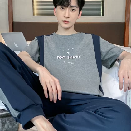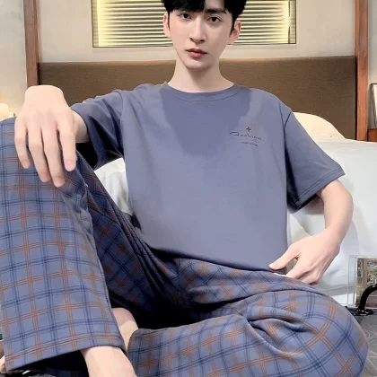 | nameOriginal | Antarctic men's pure cotton short-sleeved trousers summer pajamas |