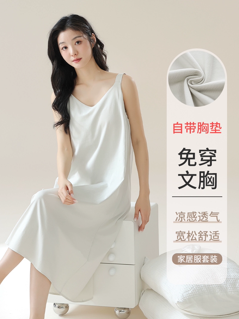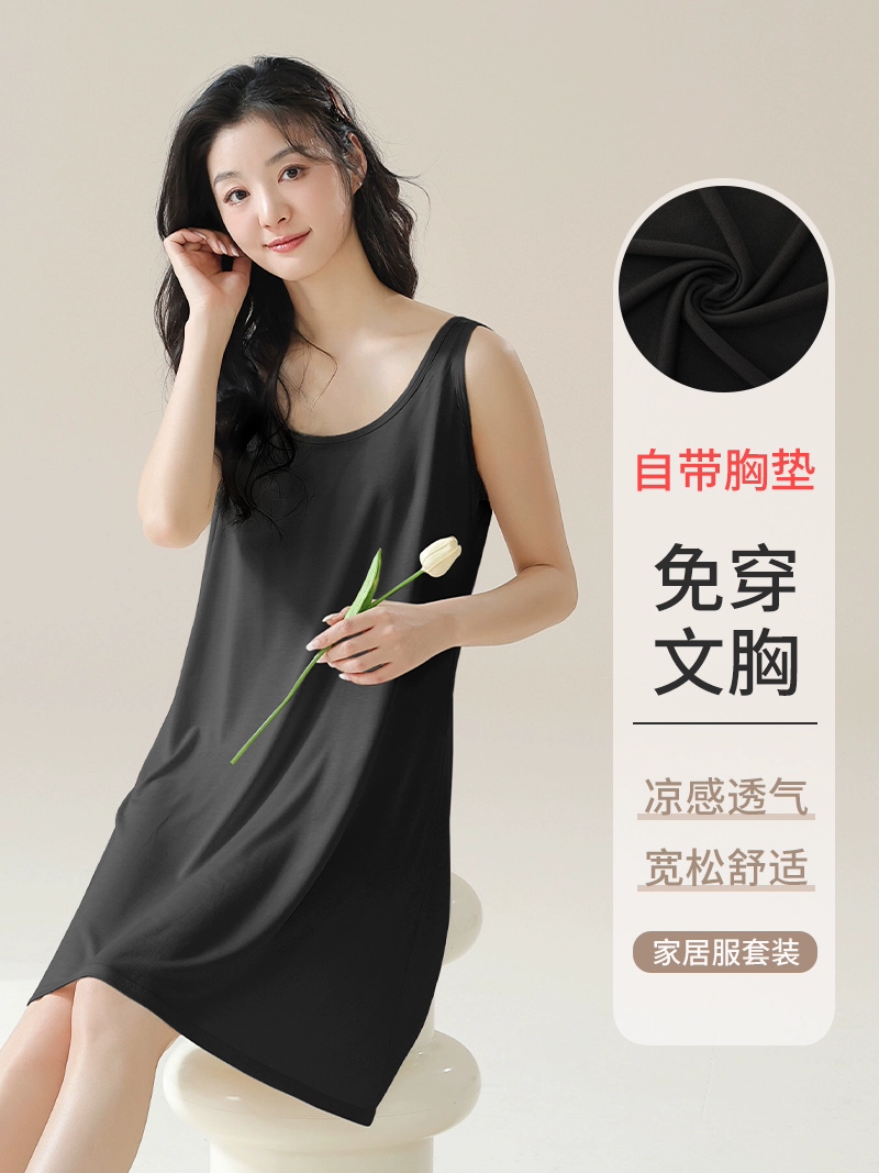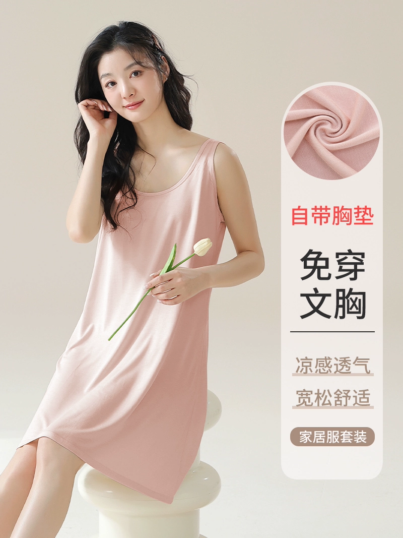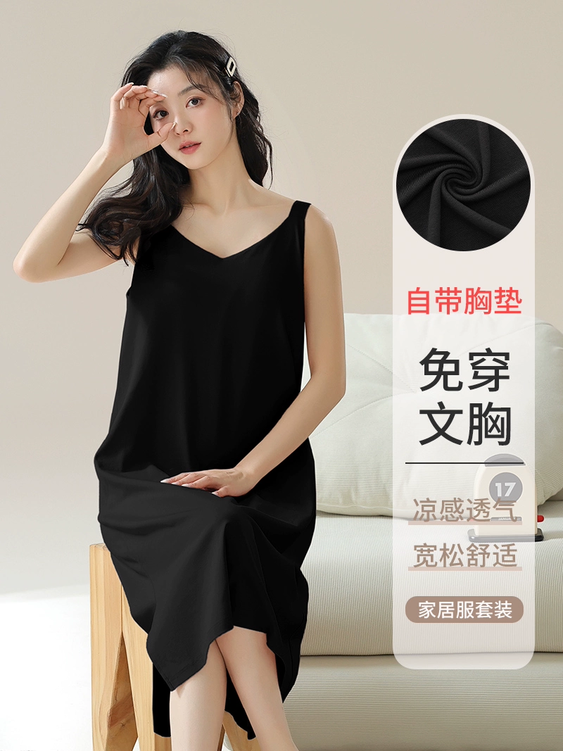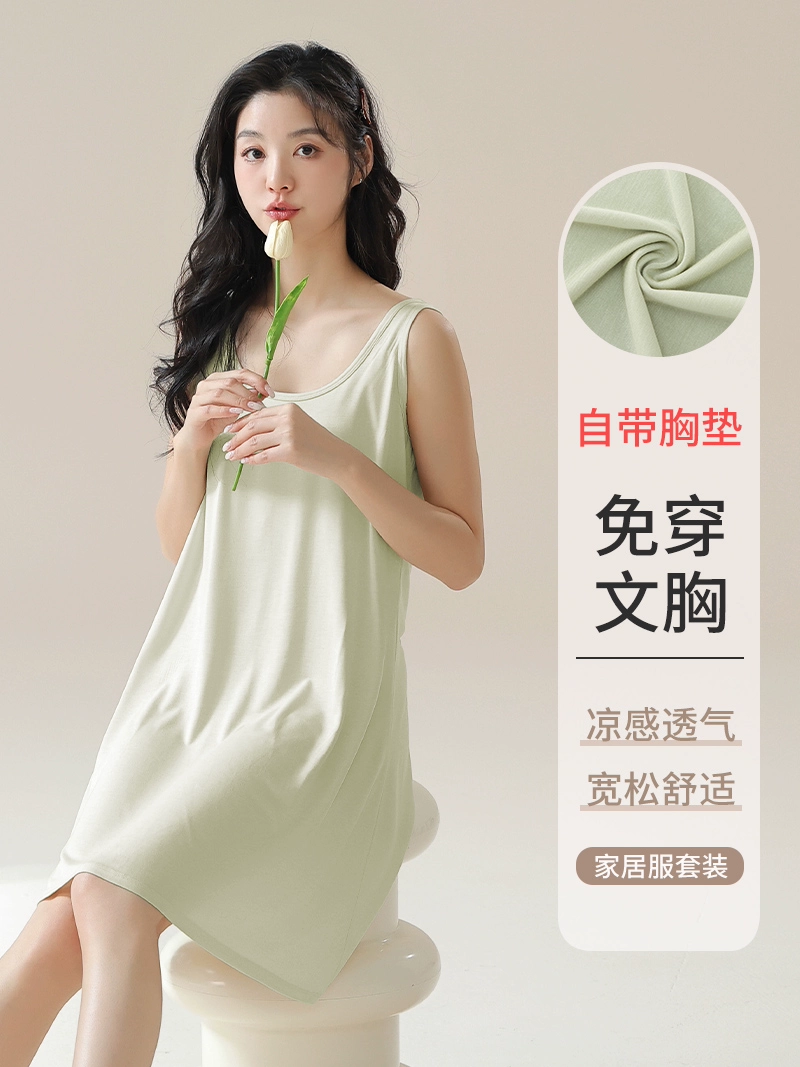 Antarctic Nightgown Women's Summer Modal Ice Ribbon Padded Vest Home Clothing Thin Sexy Suspender Pajamas