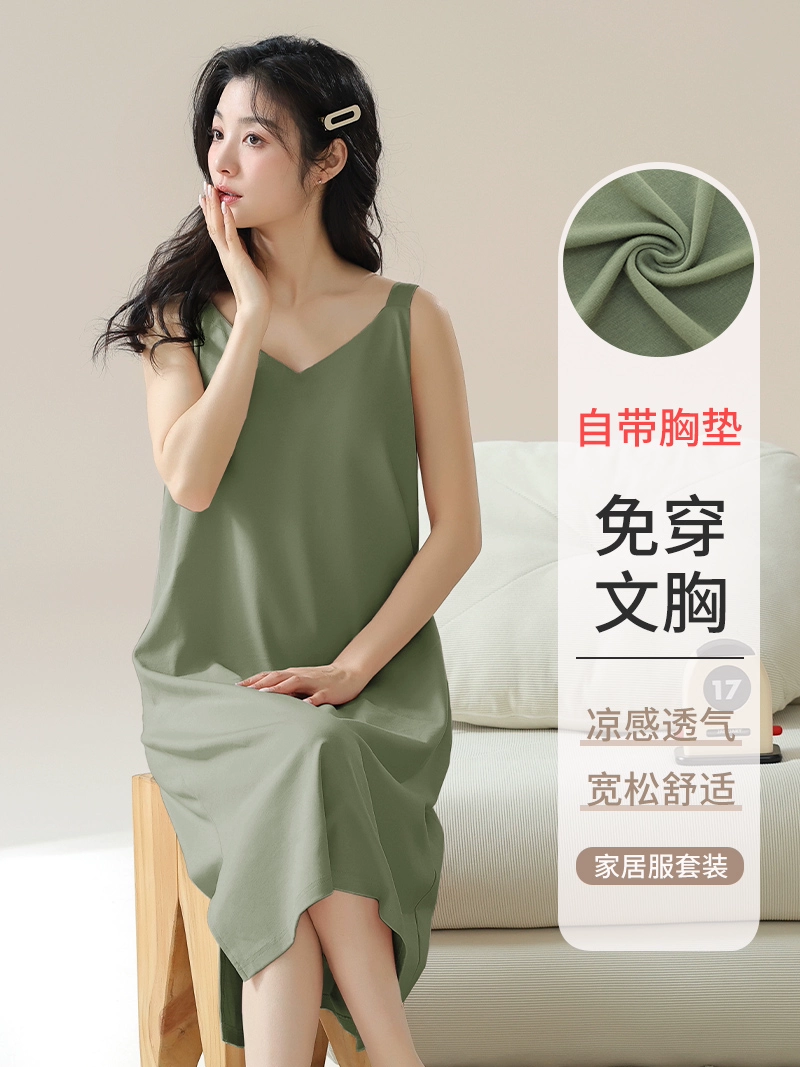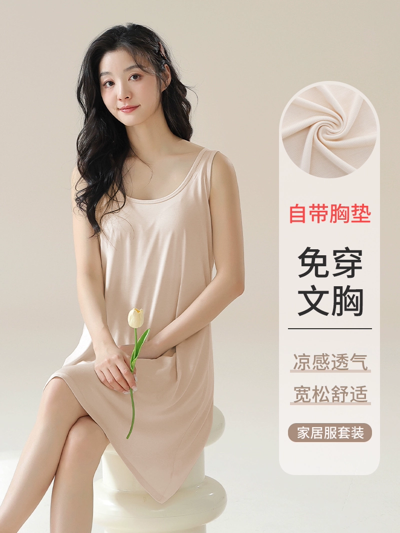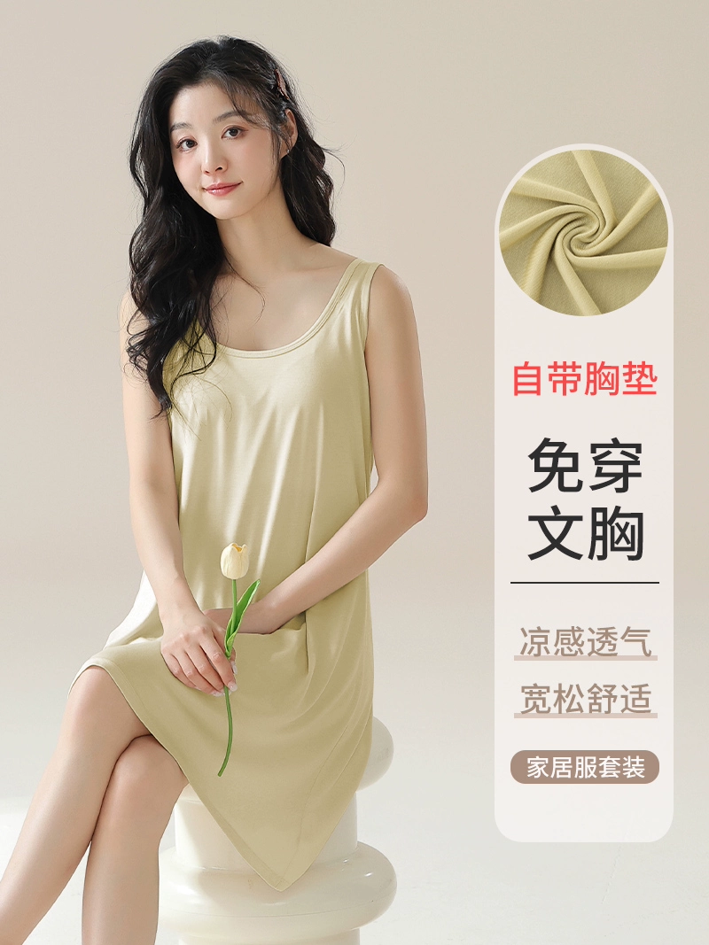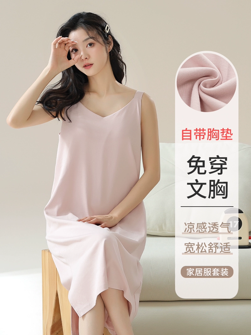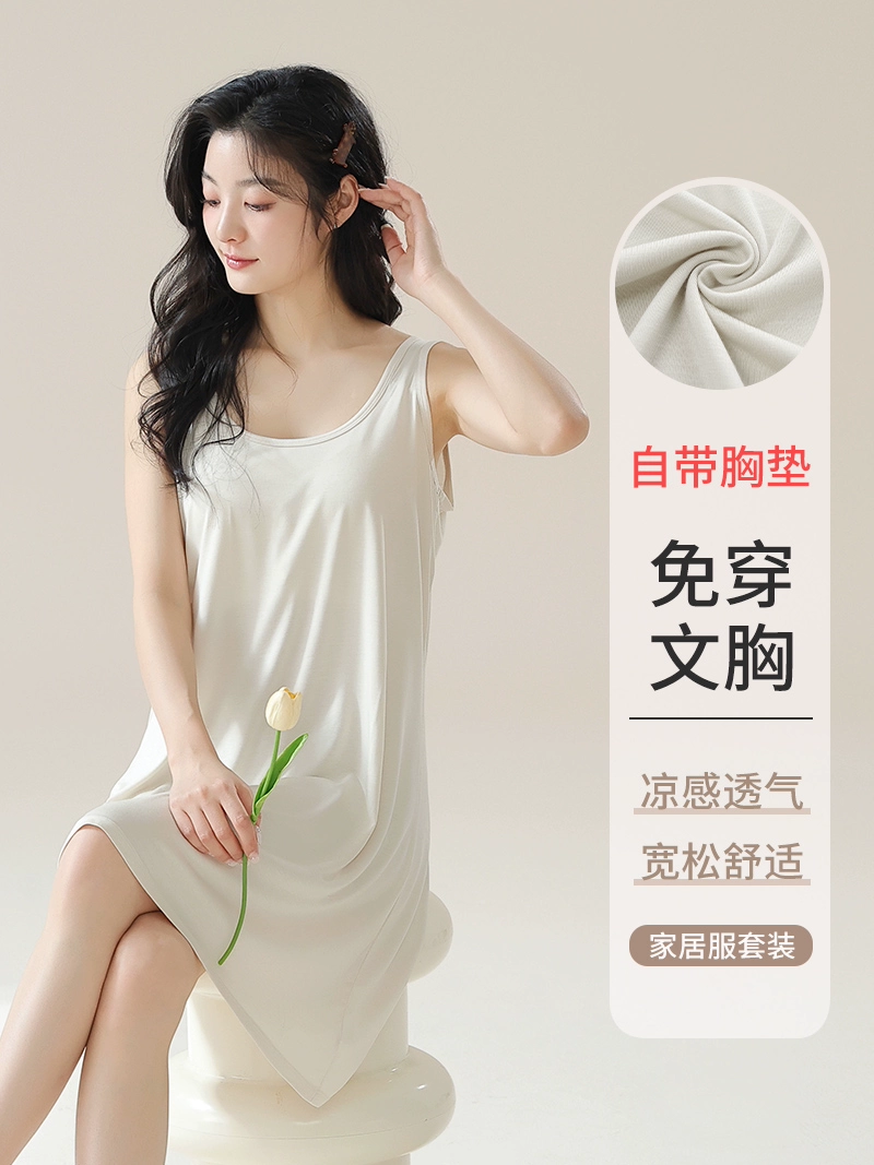Antarctic Nightgown Women's Summer Modal Ice Ribbon Padded Vest Home Clothing Thin Sexy Suspender Pajamas