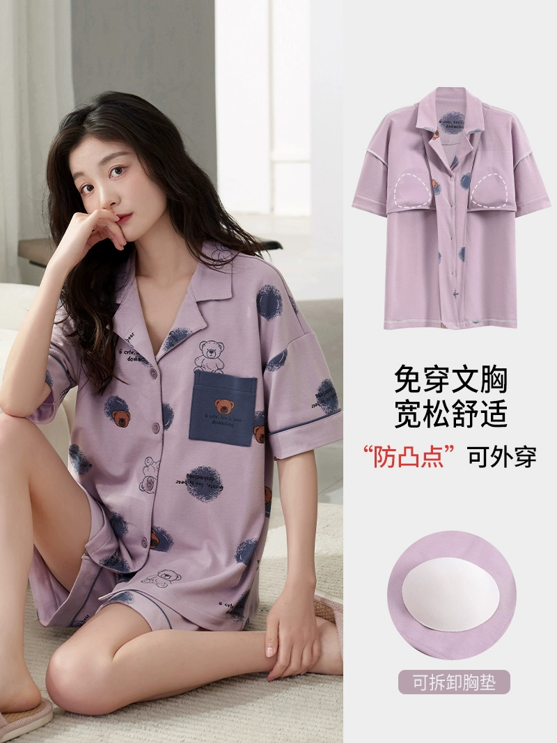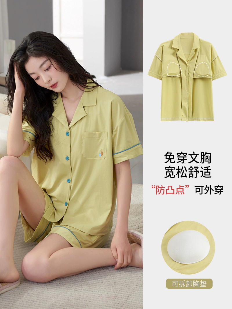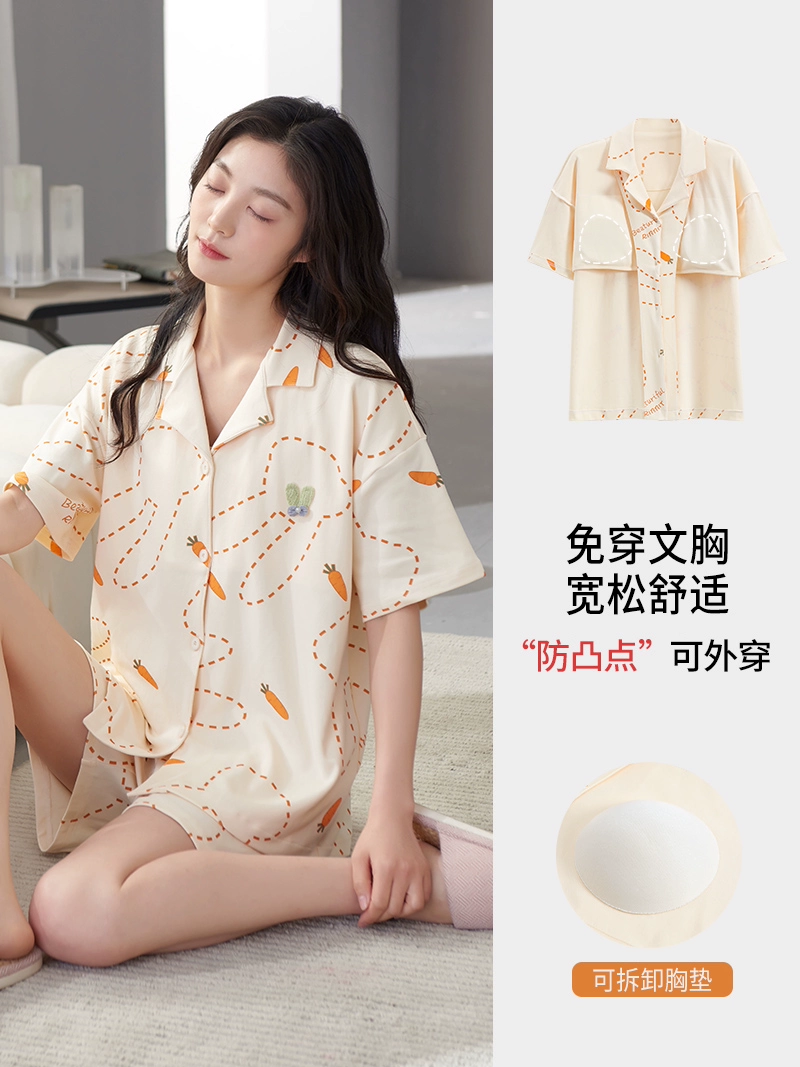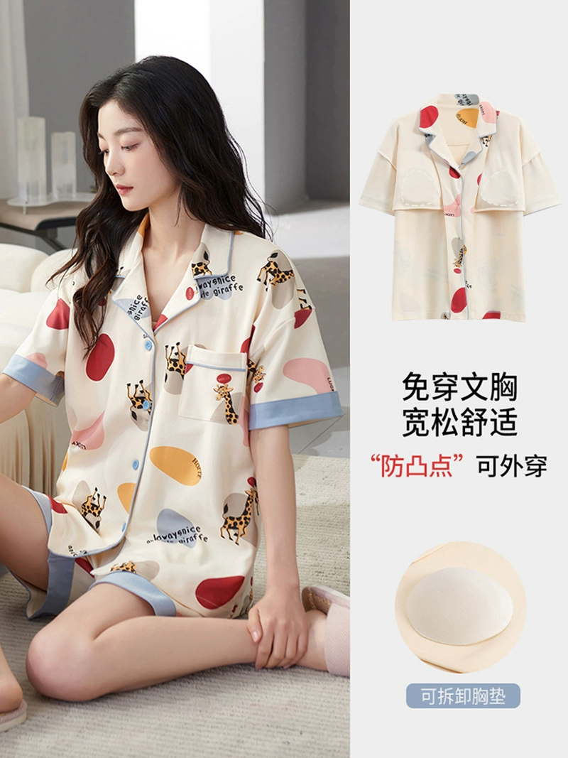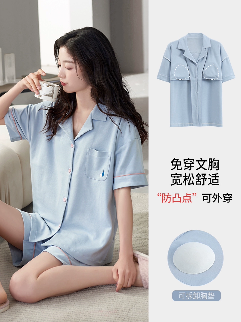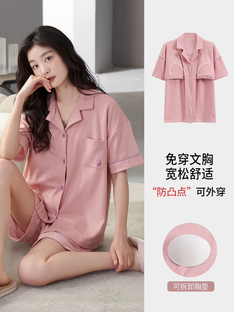 | nameOriginal | Antarctic pajamas with breast pads for women summer pure cotton short-sleeved shorts summer casual simple thin home wear set |