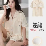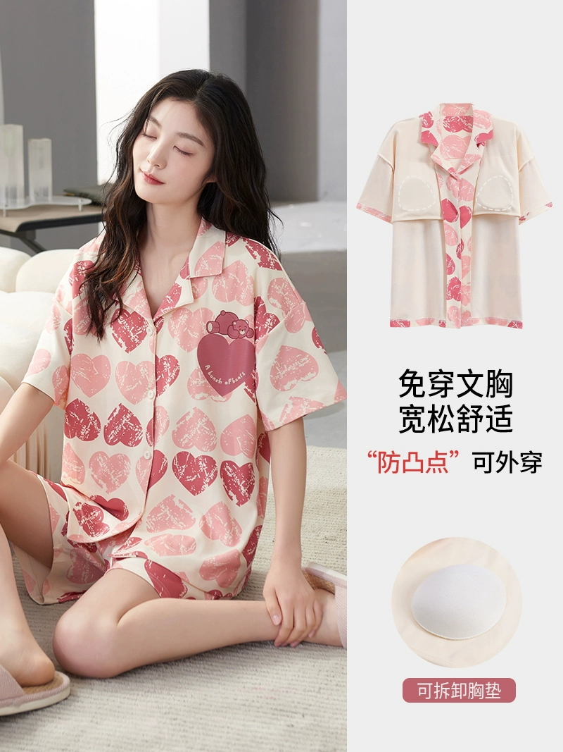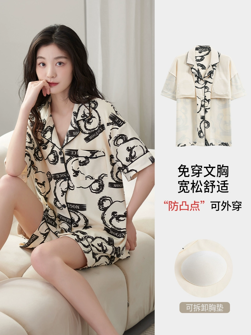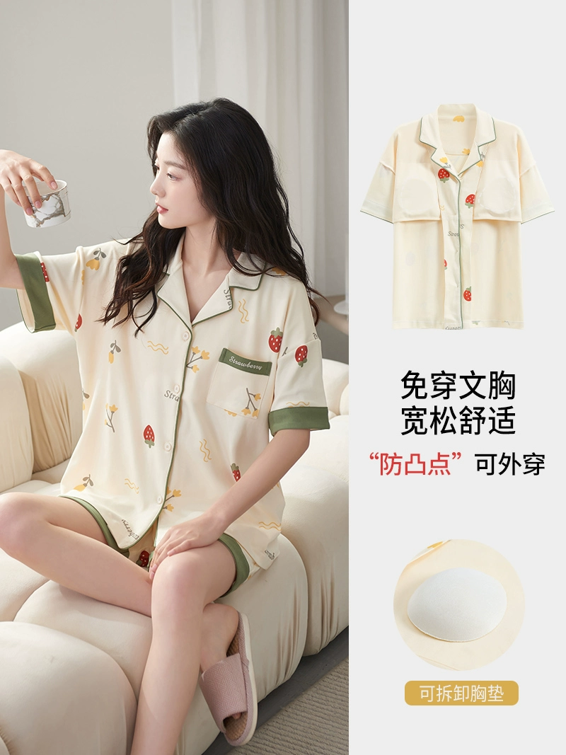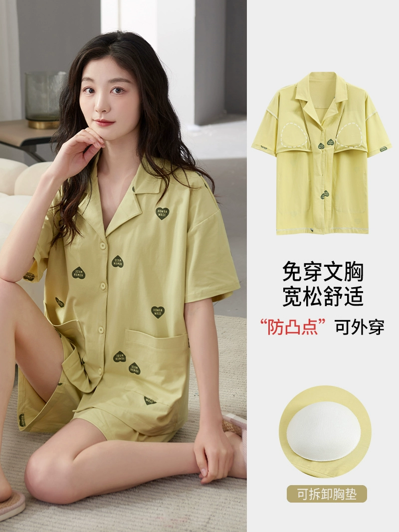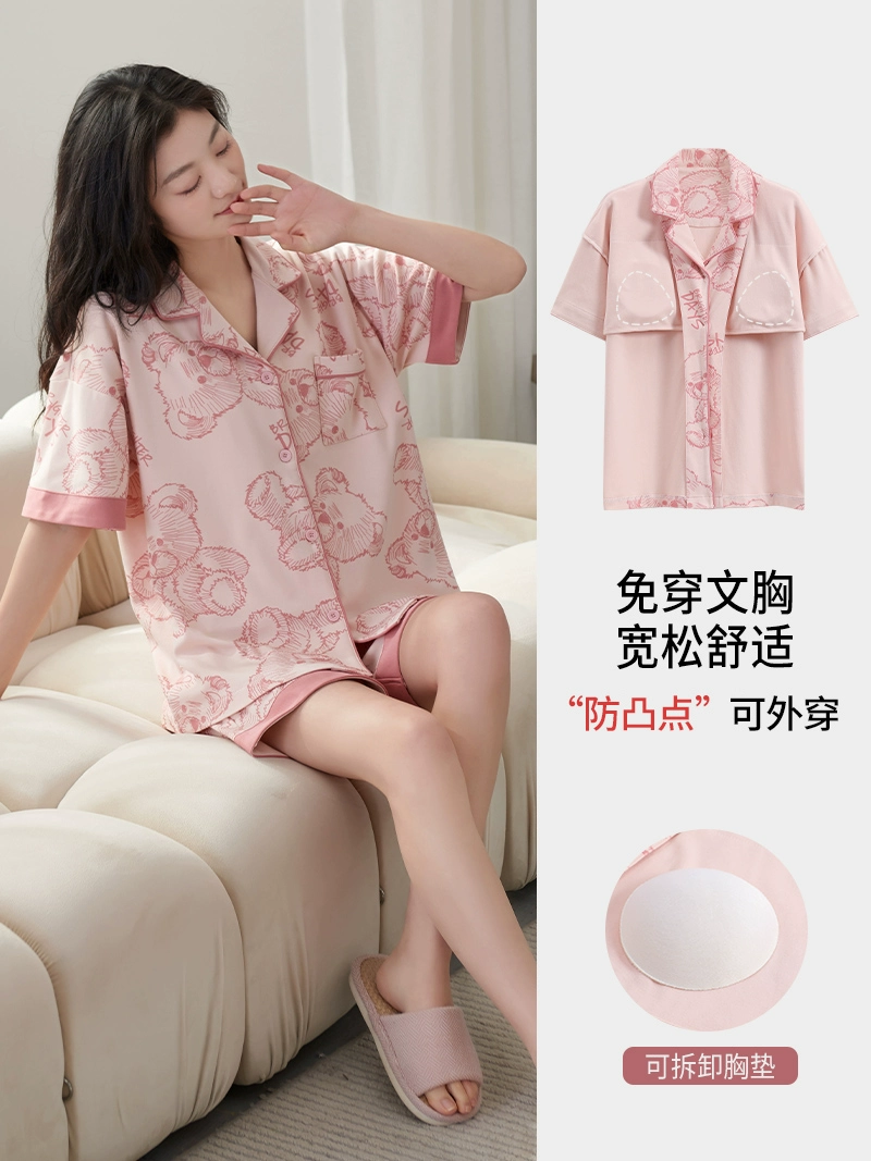| nameOriginal | Antarctic pajamas with breast pads for women summer pure cotton short-sleeved shorts summer casual simple thin home wear set |
